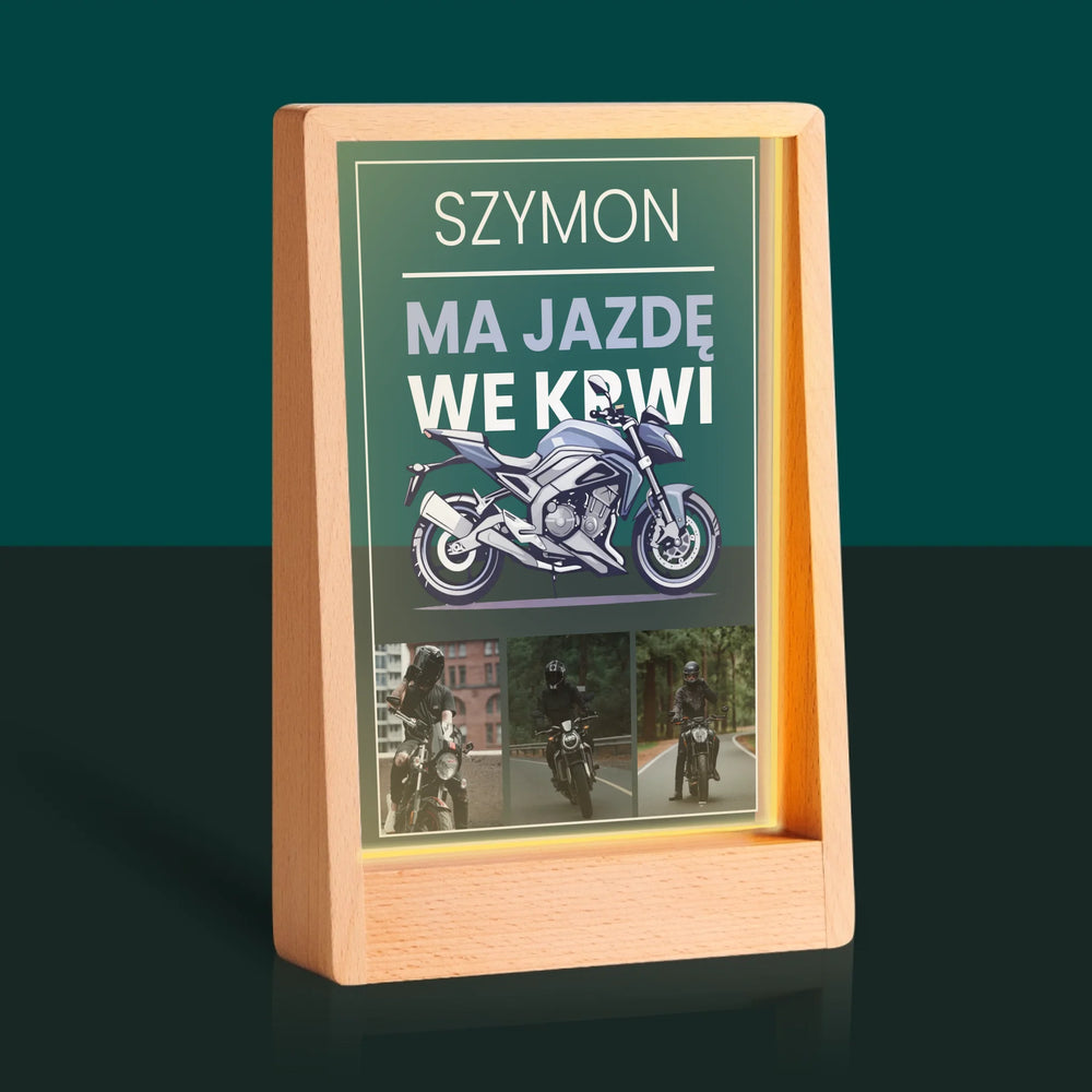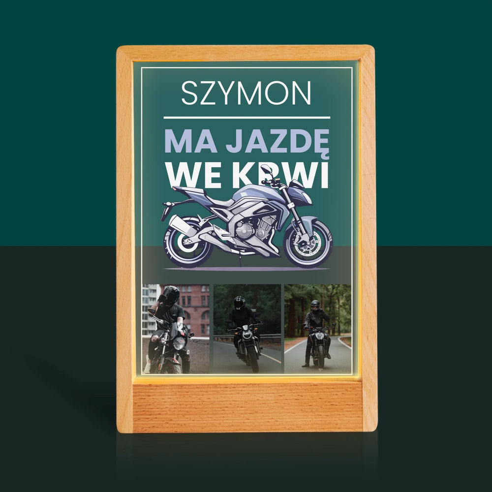 Fotokolaż: Ma Jazdę We Krwi - Wydruk na szkle akrylowym w ramce LED