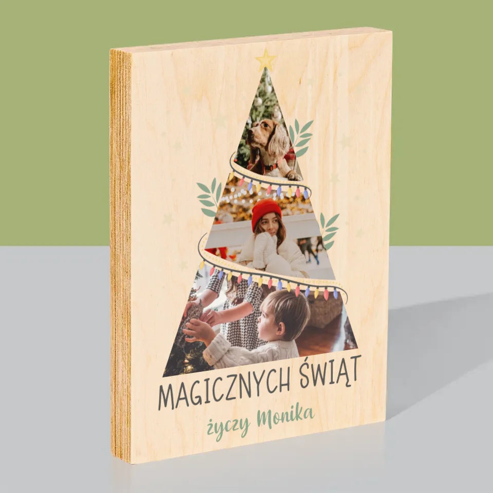 Fotokolaż: Magicznych Świąt Choinka - Wydruk na drewnie - Pion