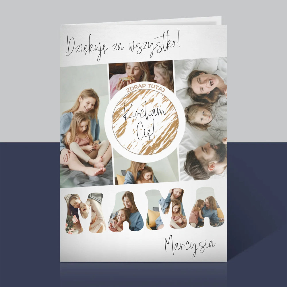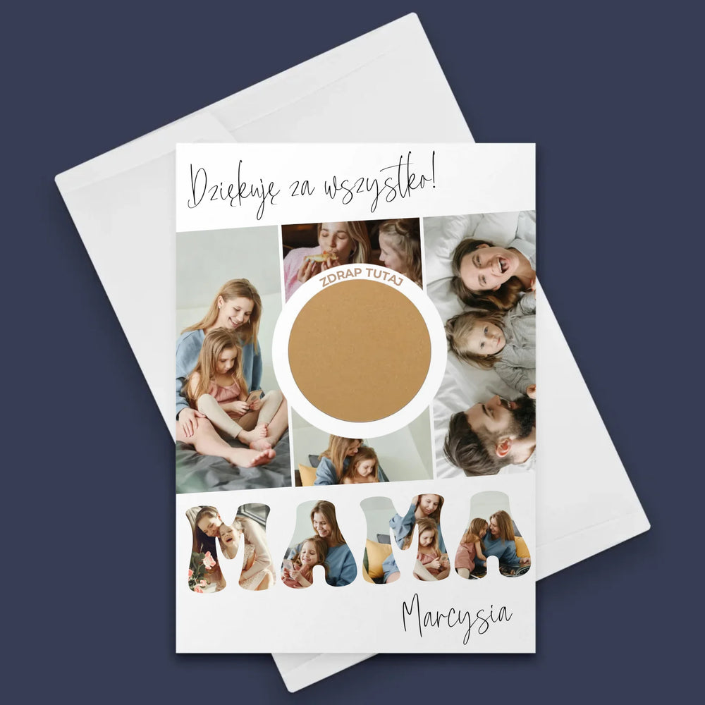 Fotokolaż: Mamo Dziękuję Za Wszystko - Kartka zdrapka