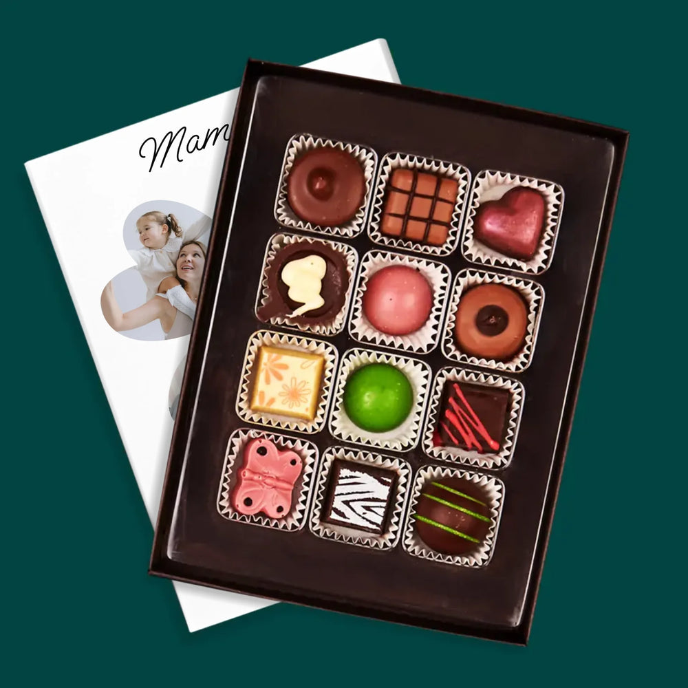 Pyszne praliny z belgijskiej czekolady w eleganckim pudełku z wybraną przez Ciebie personalizacją.