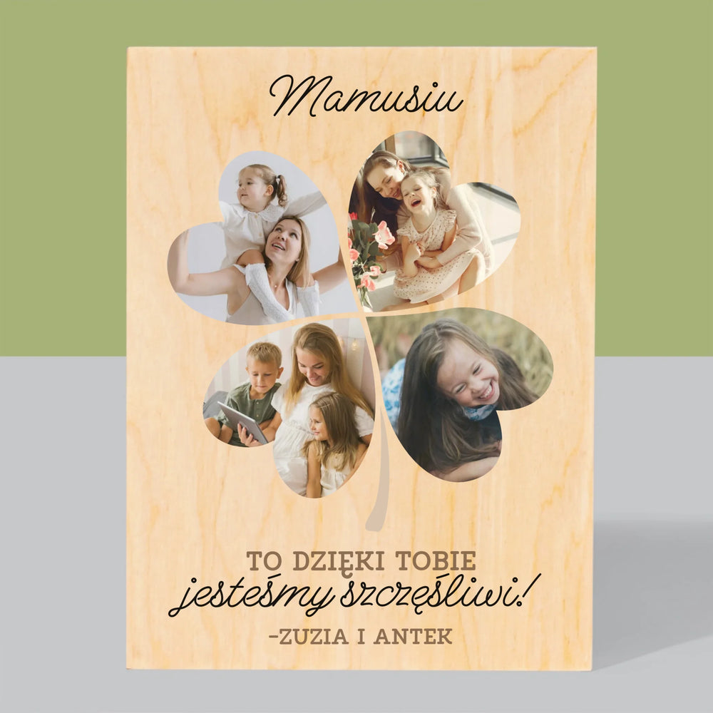 Fotokolaż: Mamo, To Dzięki Tobie Jesteśmy Szczęśliwi! - Wydruk na drewnie - Pion