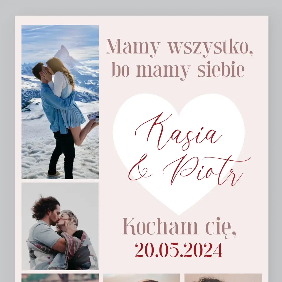 Fotokolaż: Mamy Wszystko, Bo Mamy Siebie - Personalizowany Obraz na płótnie