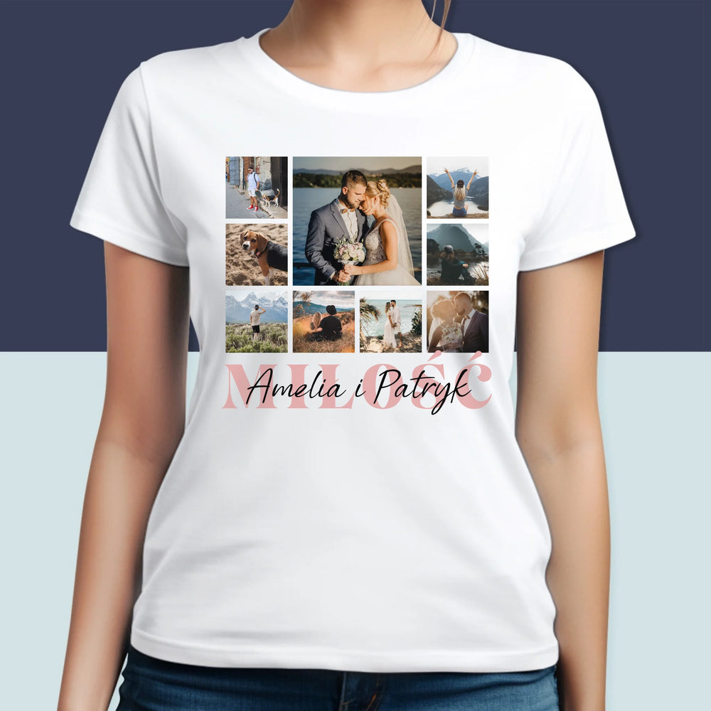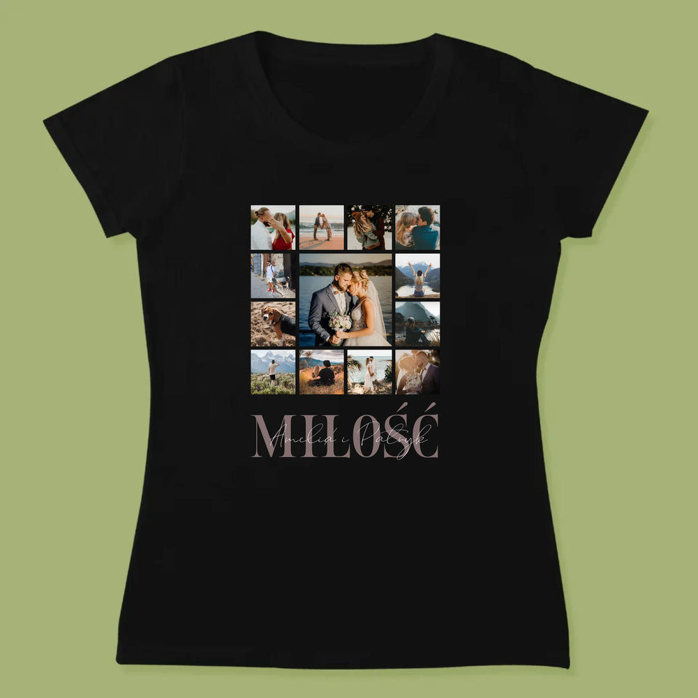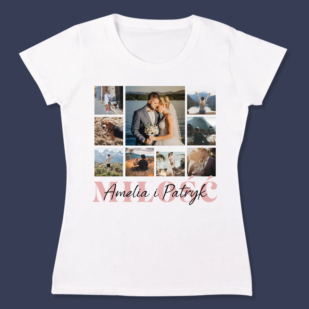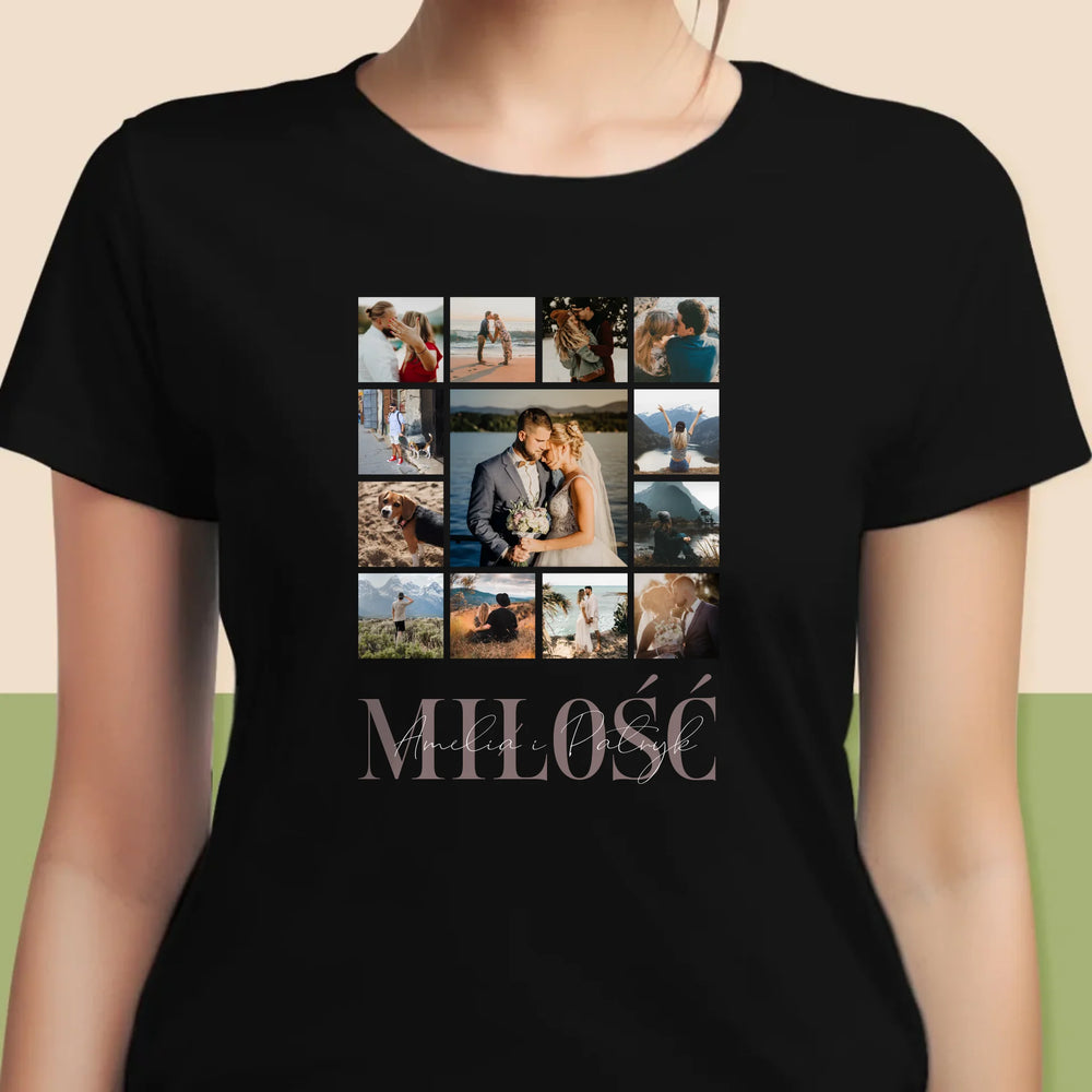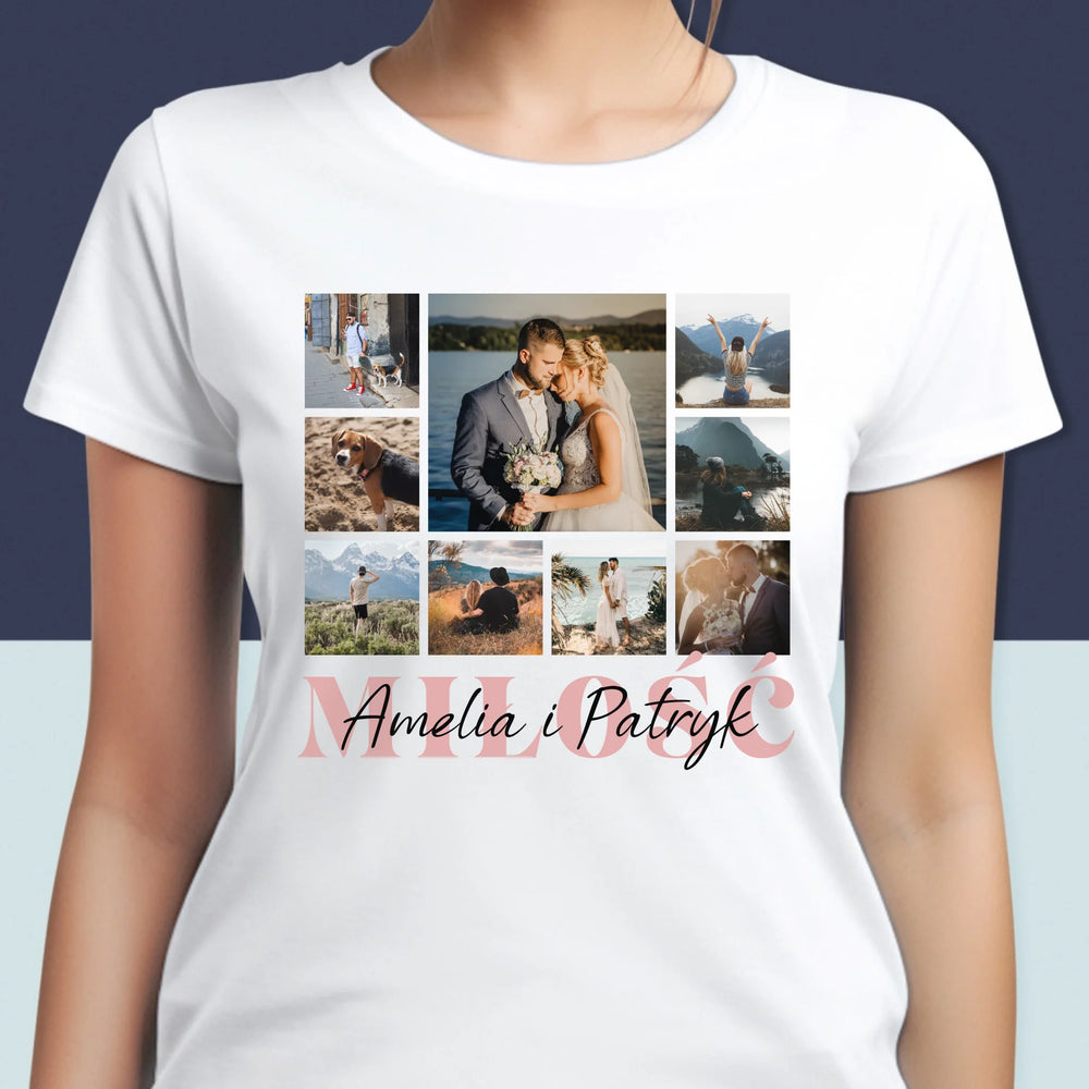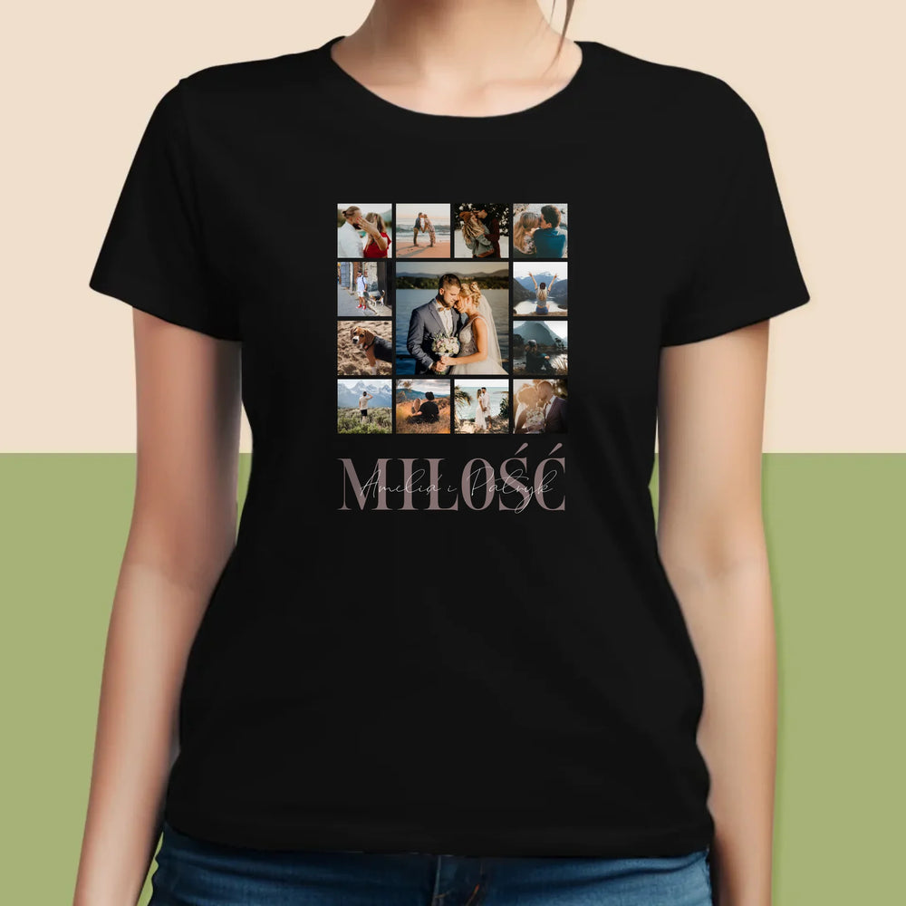 Fotokolaż: Miłość Imiona - Personalizowana Koszulka Damska