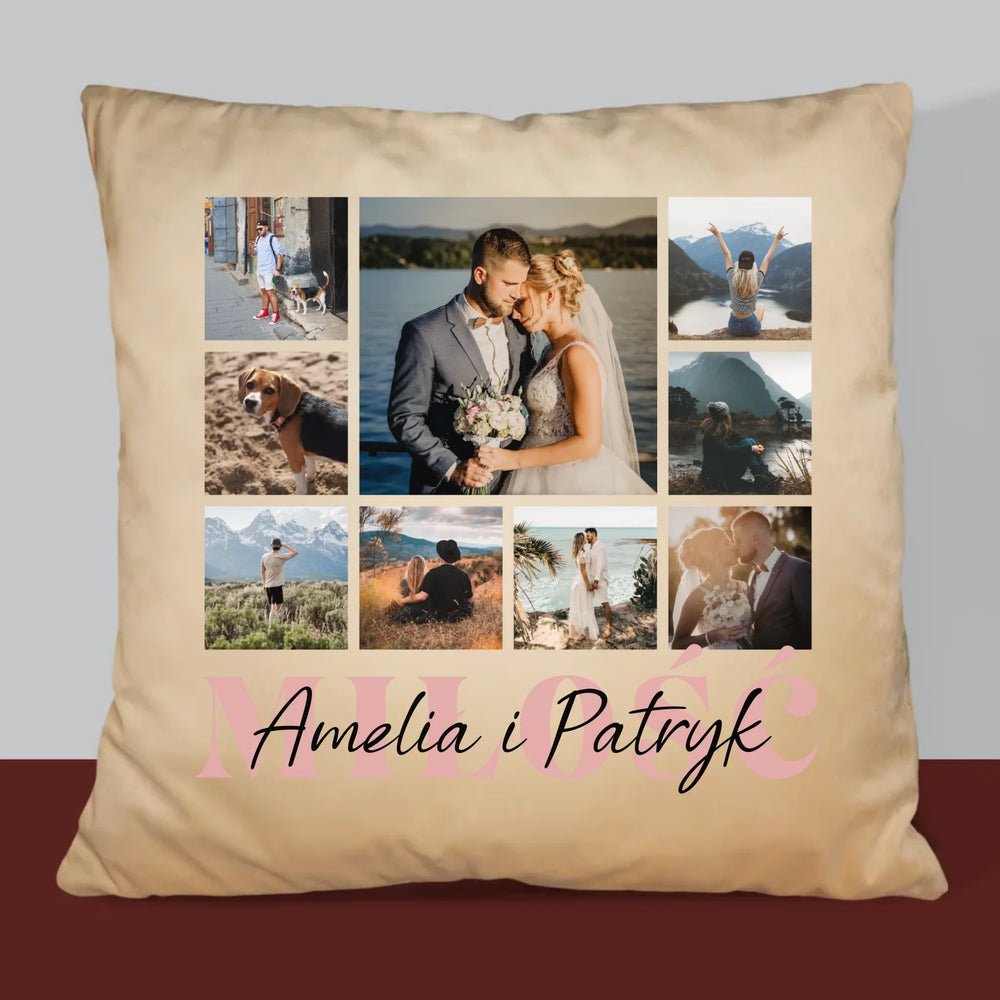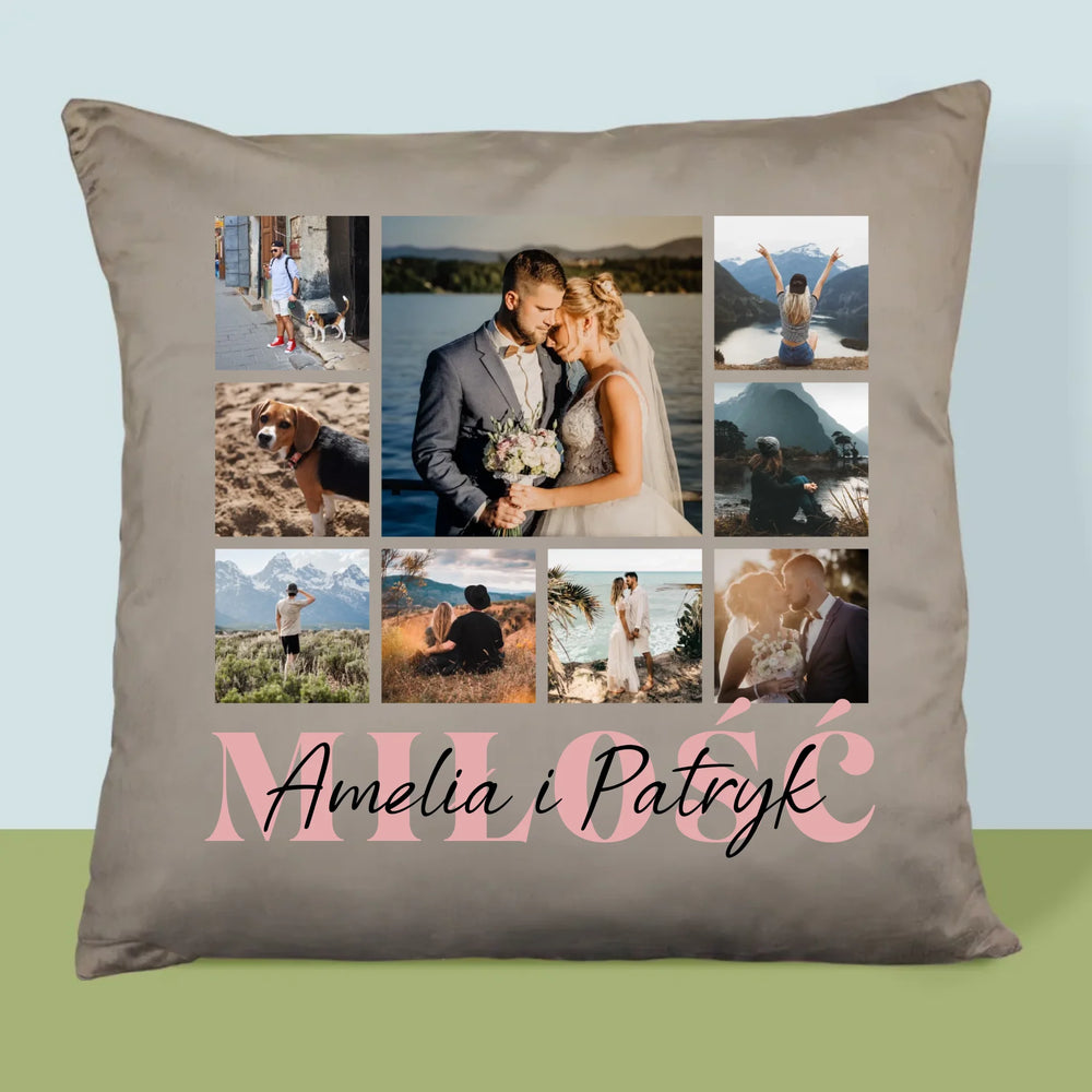 Fotokolaż: Miłość Imiona - Poduszka z Nadrukiem