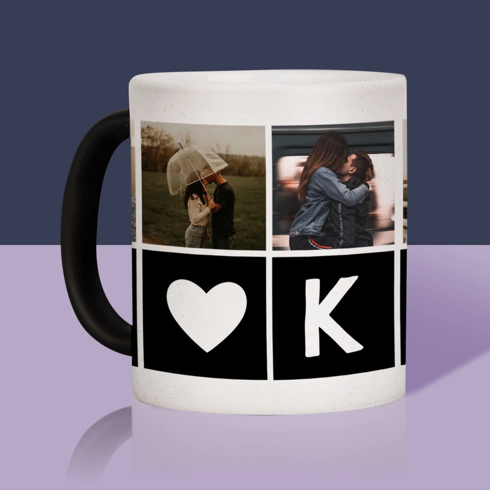 Fotokolaż: Miłosne Monogramy Ze Zdjęciami - Magiczny kubek z brokatem