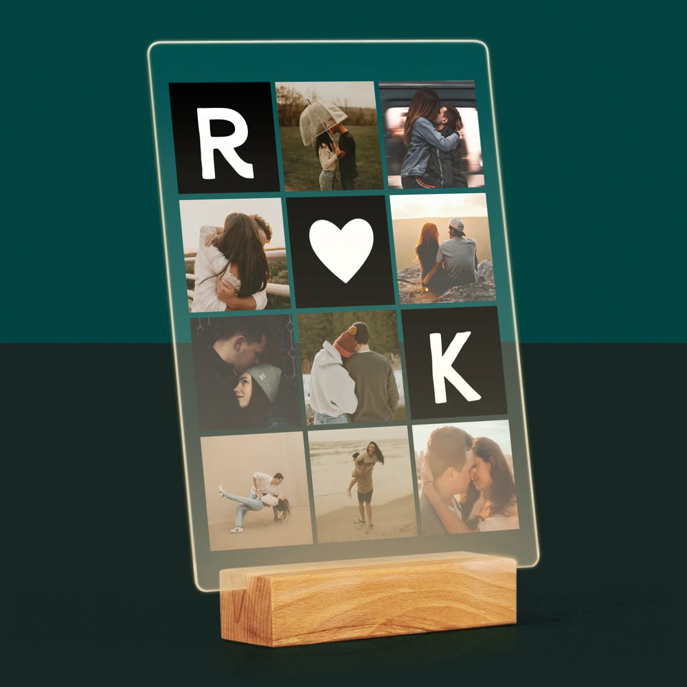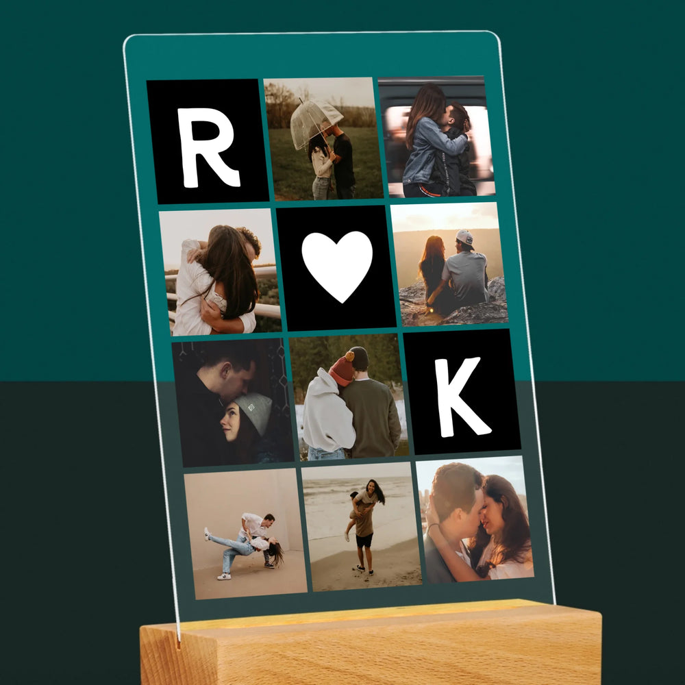 Fotokolaż: Miłosne Monogramy Ze Zdjęciami - Wydruk na szkle akrylowym LED