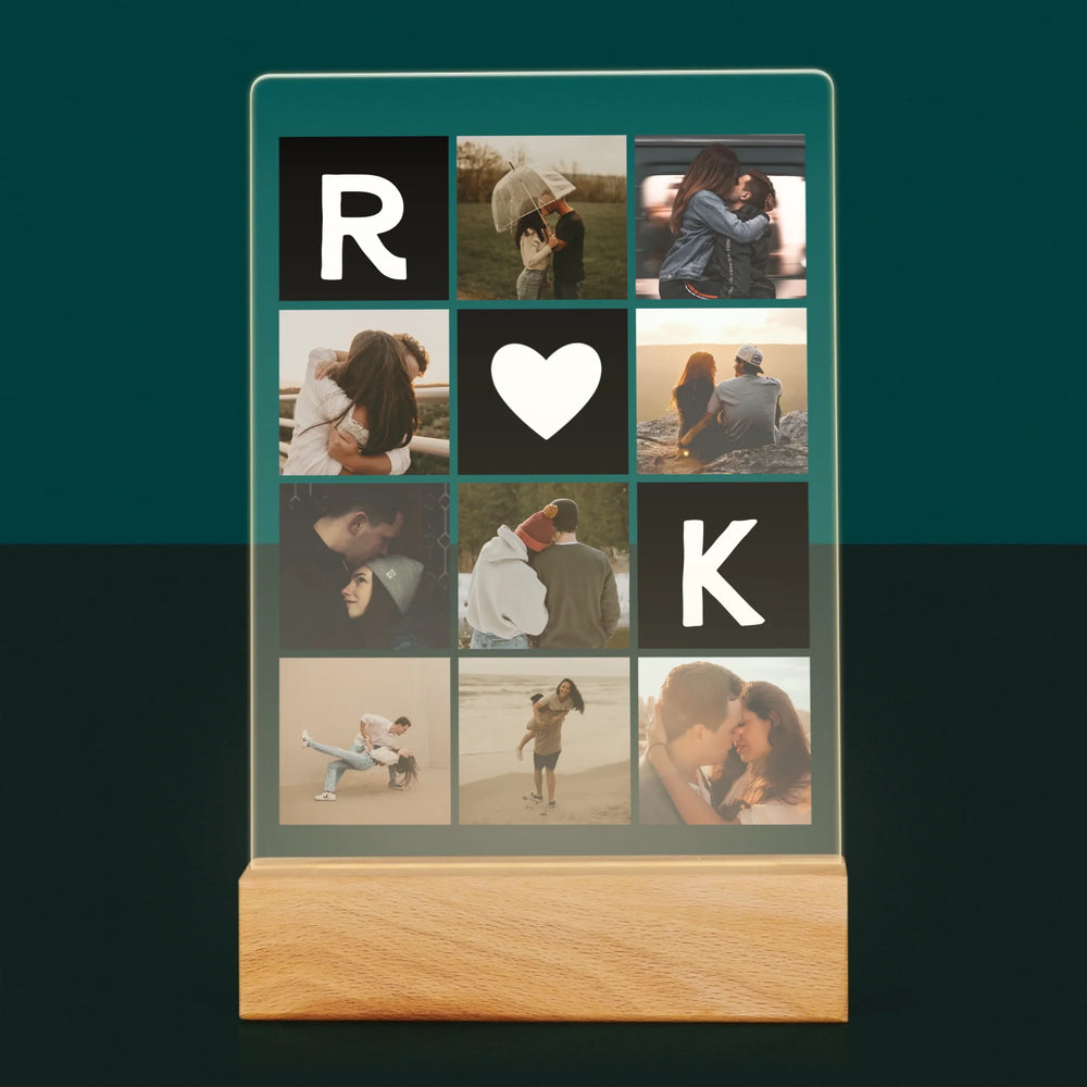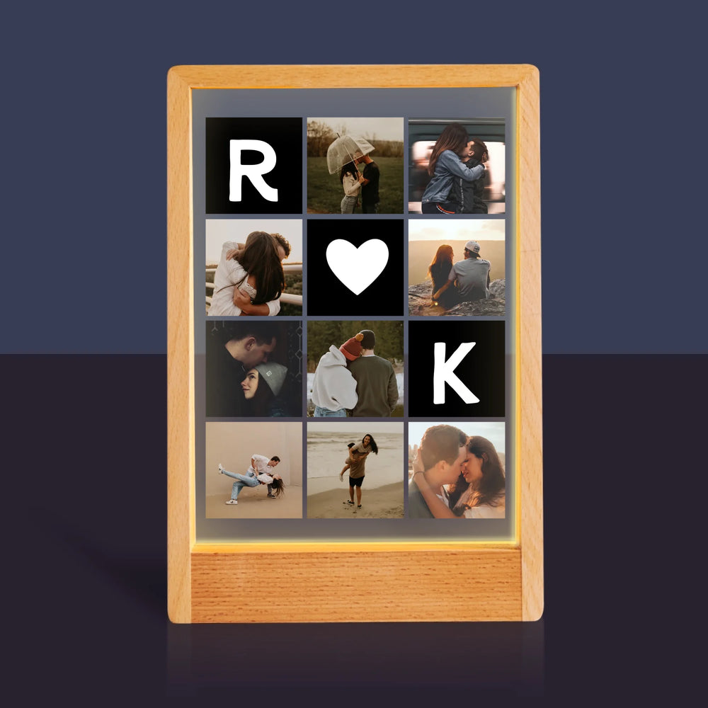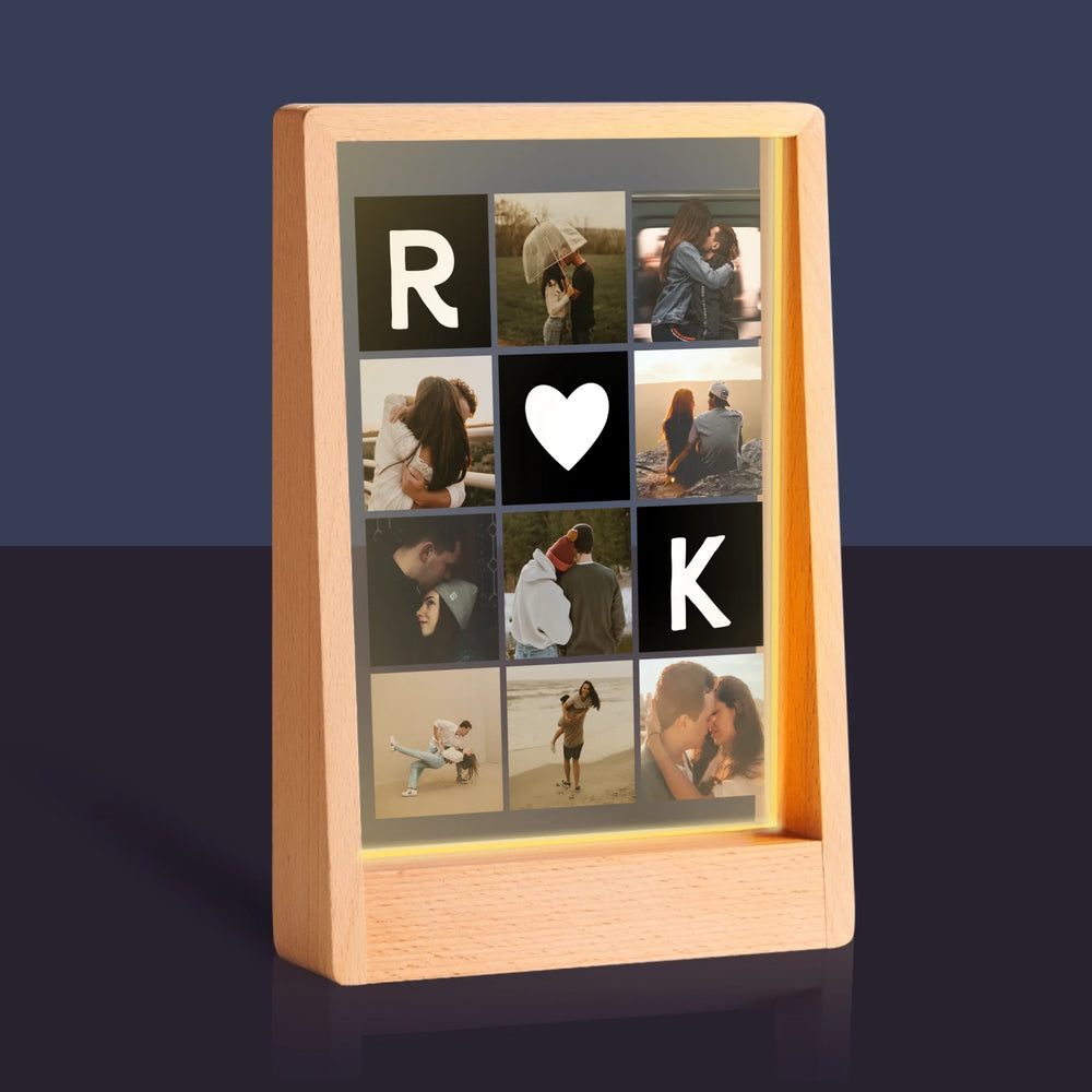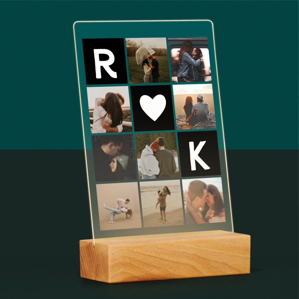 Fotokolaż: Miłosne Monogramy Ze Zdjęciami - Wydruk na szkle akrylowym w ramce LED