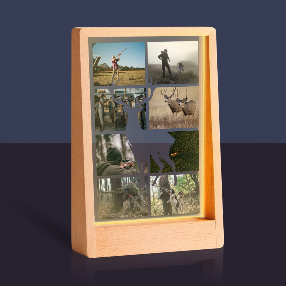 Fotokolaż: Myśliwy - Wydruk na szkle akrylowym w ramce LED