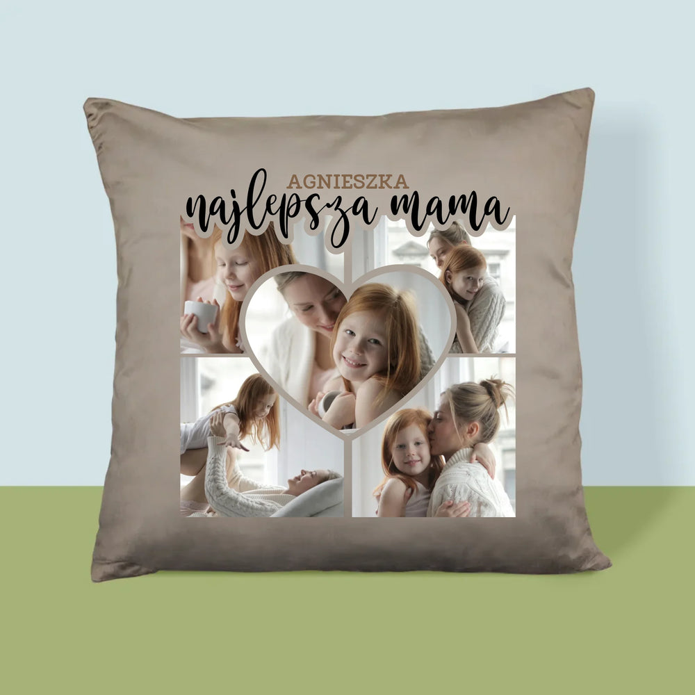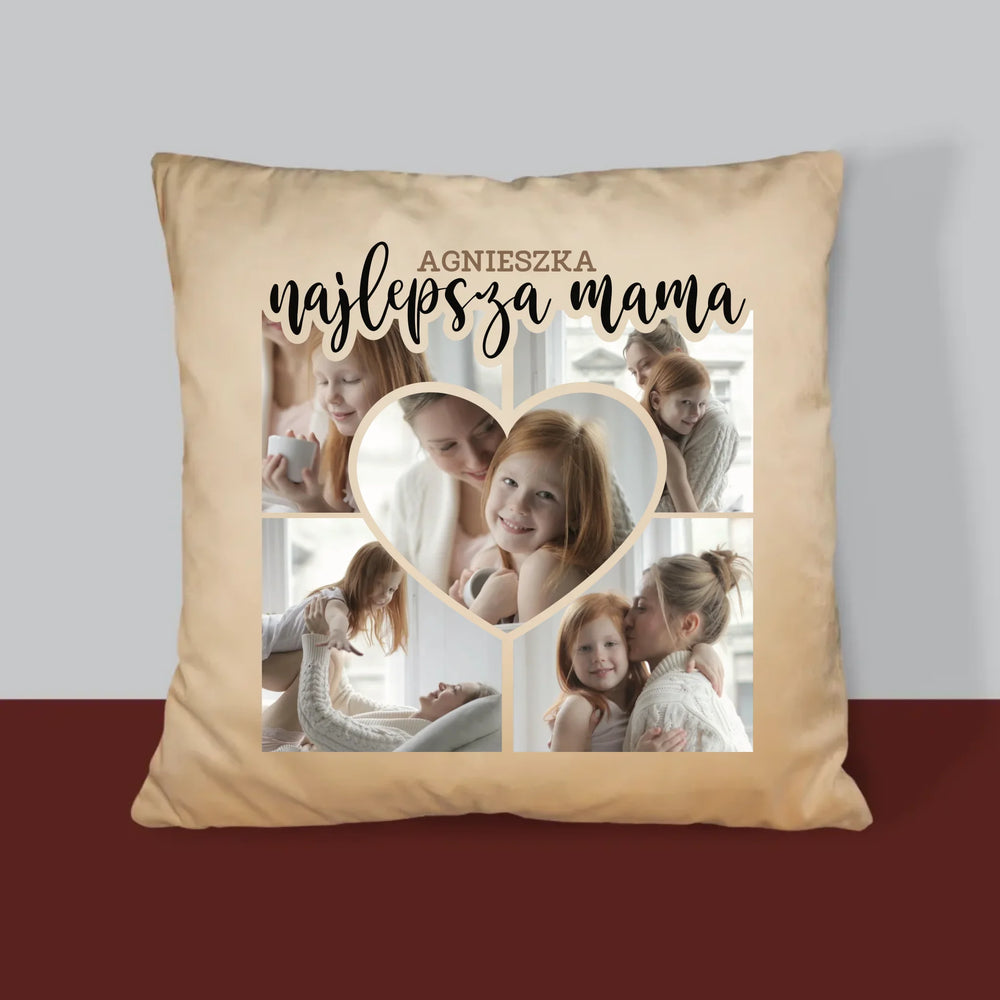 Fotokolaż: Najlepsza Mama Serce - Poduszka z Nadrukiem