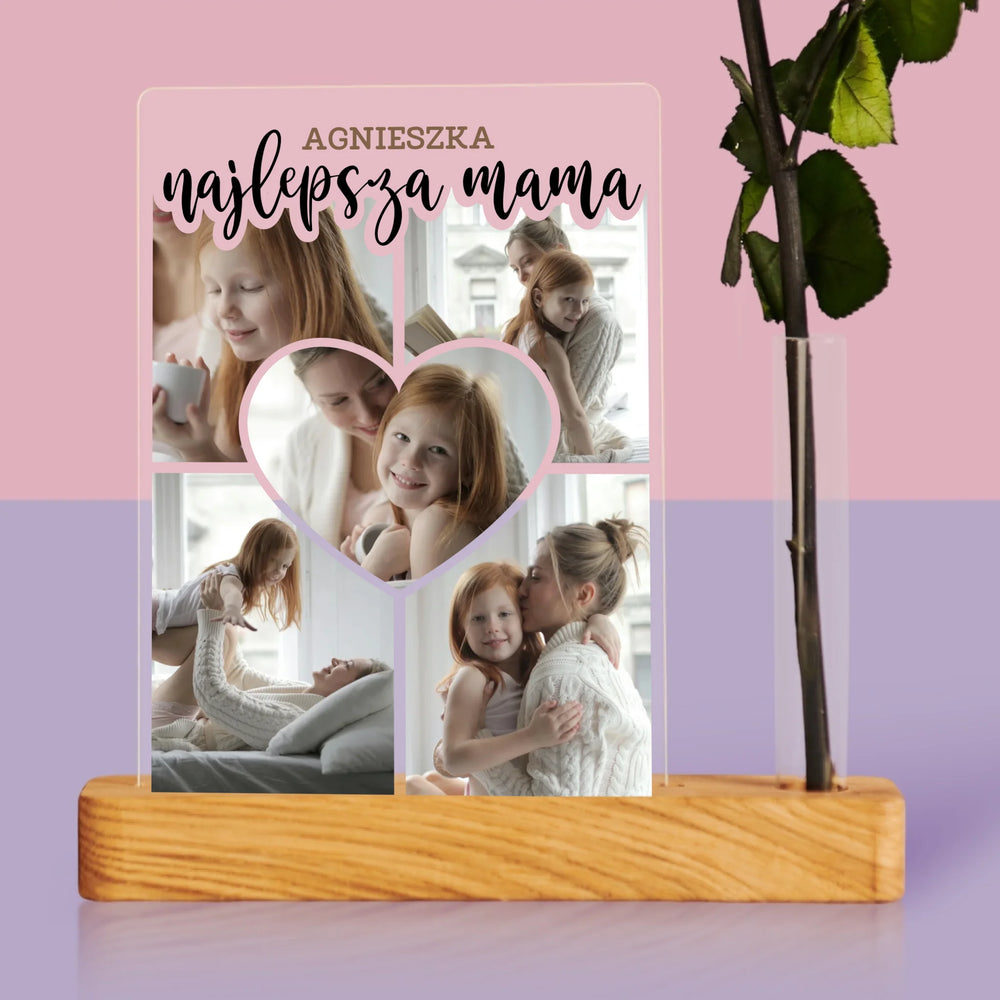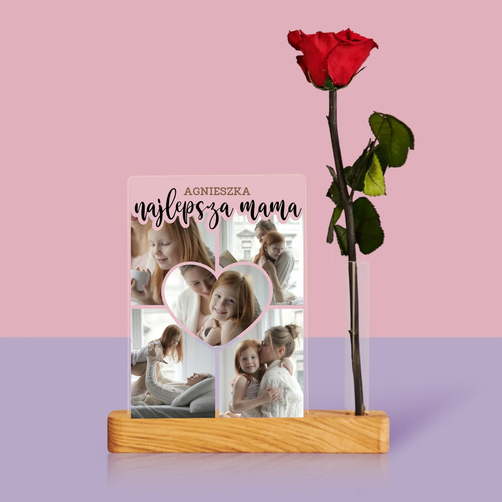Fotokolaż: Najlepsza Mama Serce - Wydruk Na Szkle Akrylowym z Różą