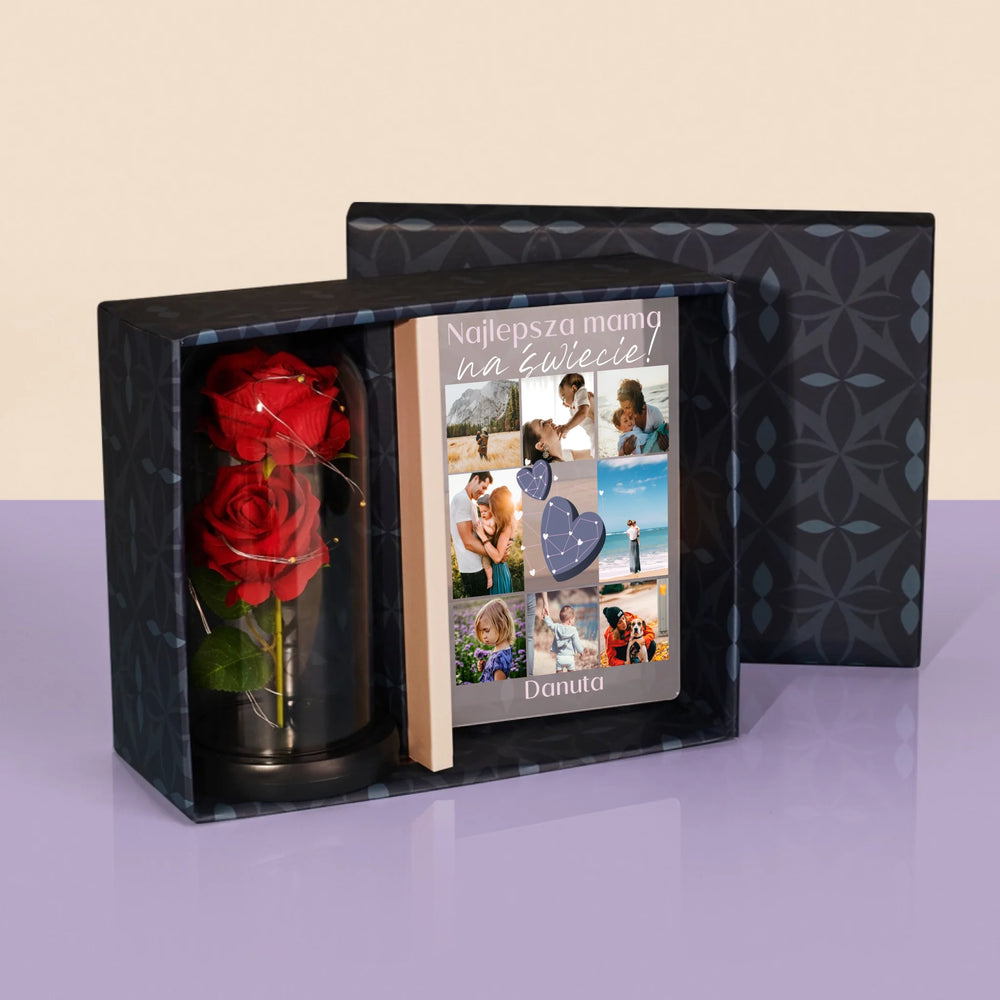 Fotokolaż: Najlepsza Mama - Zestaw prezentowy z wieczną różą