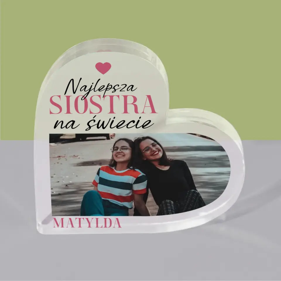 Fotokolaż: Najlepsza Siostra - Blok Akrylowy Serce
