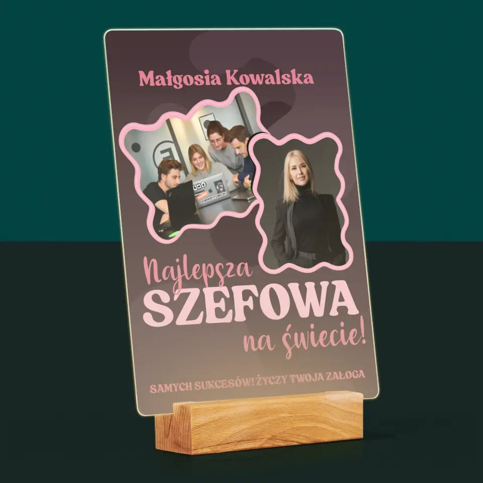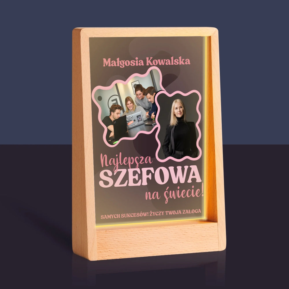 Fotokolaż: Najlepsza Szefowa - Wydruk na szkle akrylowym w ramce LED