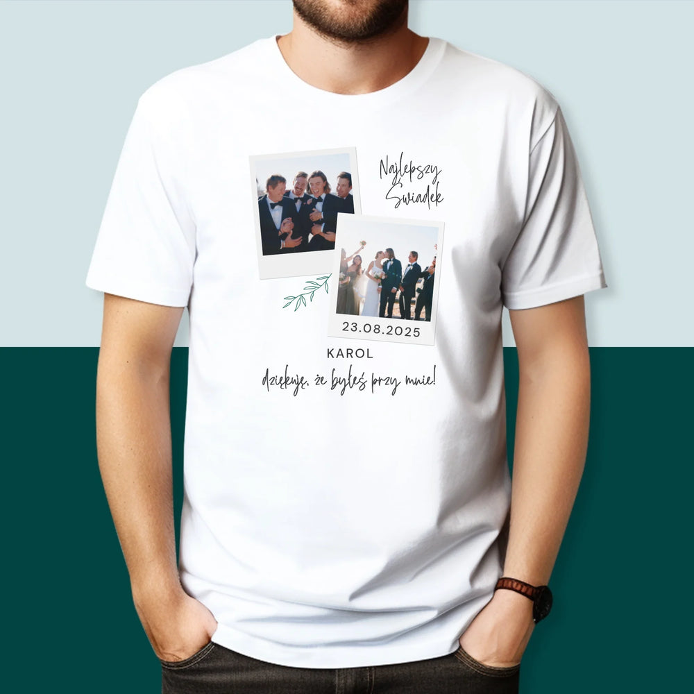 Fotokolaż: Najlepszy Świadek Polaroidy - Personalizowana Koszulka Męska