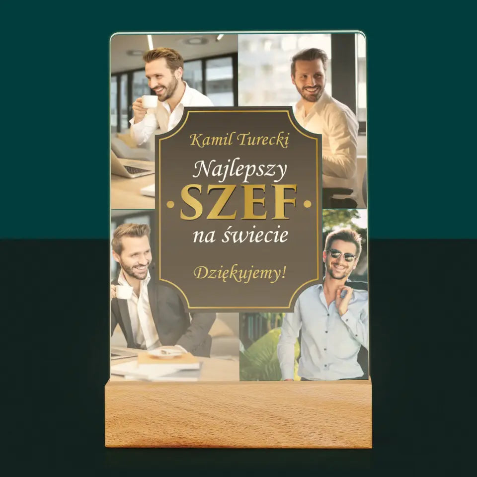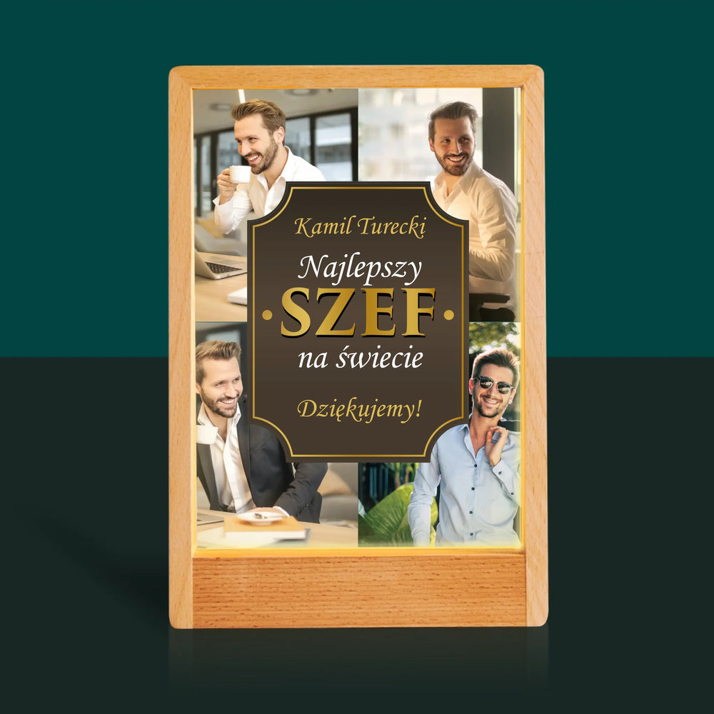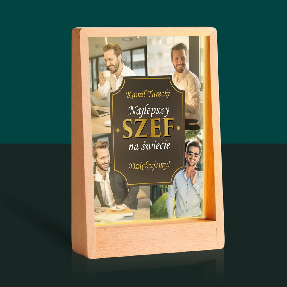 Fotokolaż: Najlepszy Szef Na Świecie - Wydruk na szkle akrylowym w ramce LED