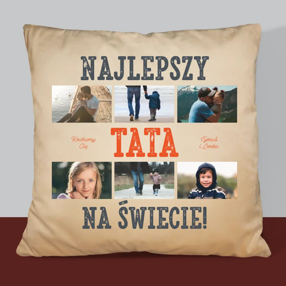 Fotokolaż: Najlepszy Tata Na Świecie Zdjęcia - Poduszka z Nadrukiem