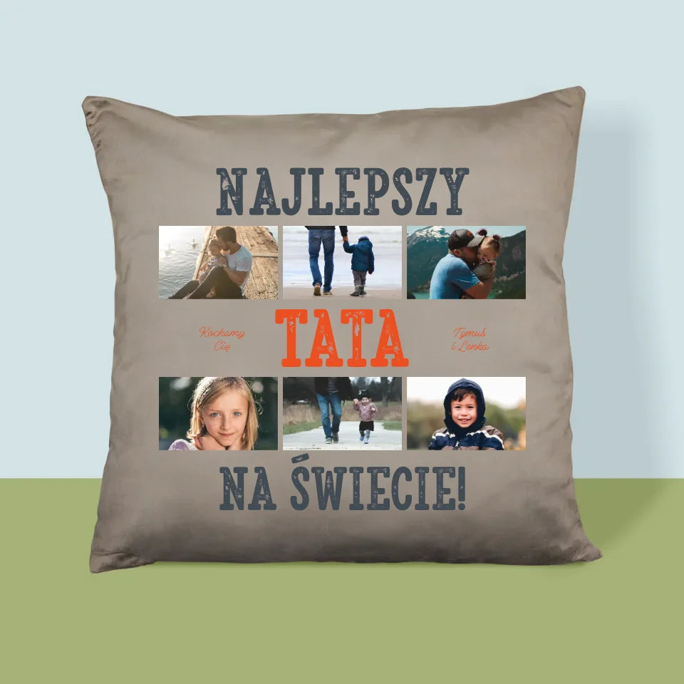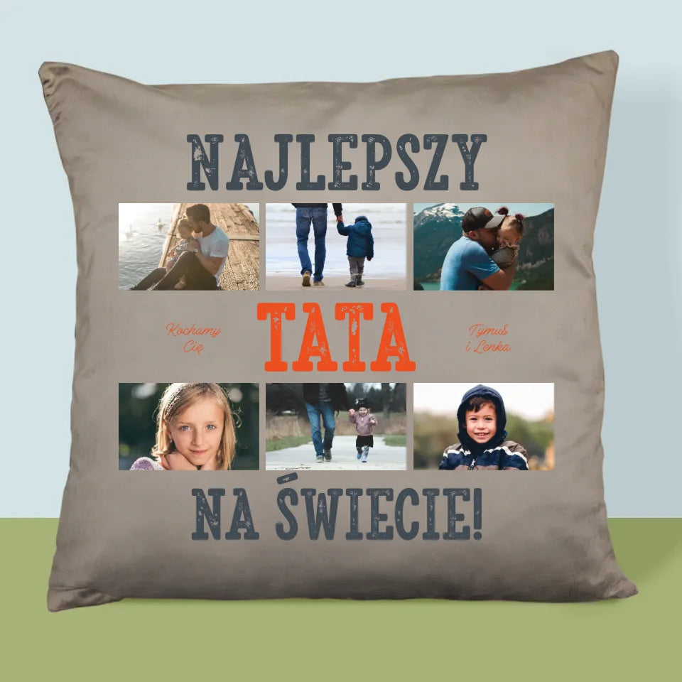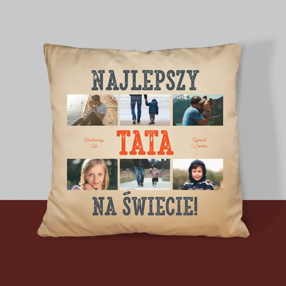 Fotokolaż: Najlepszy Tata Na Świecie Zdjęcia - Poduszka z Nadrukiem