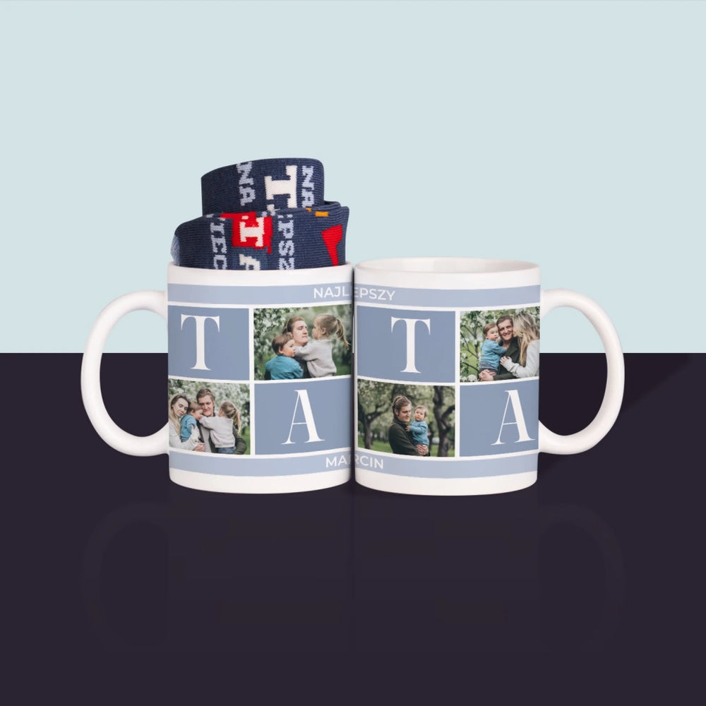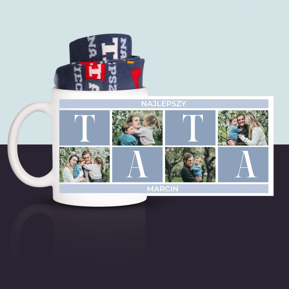 Fotokolaż: Najlepszy Tata - Skarpetki w kubku dla taty