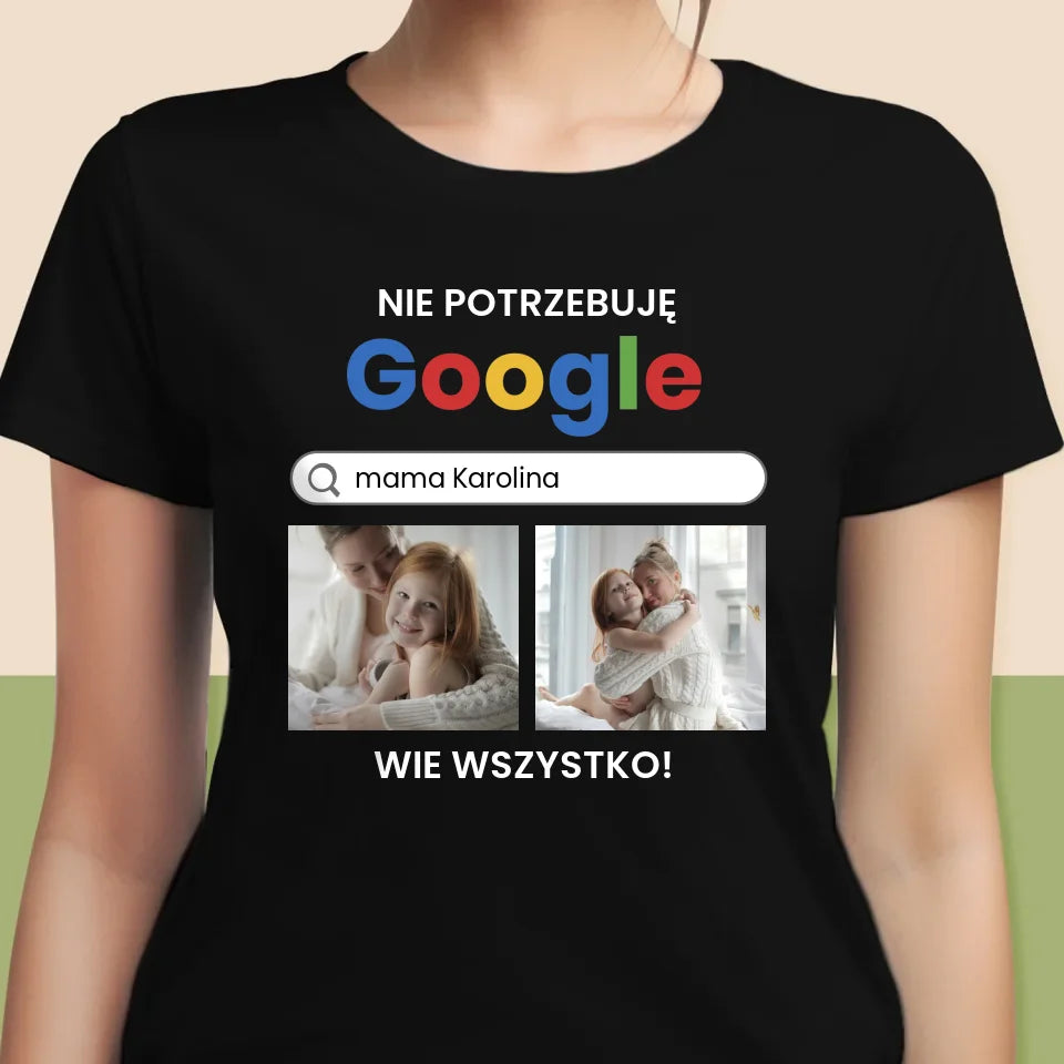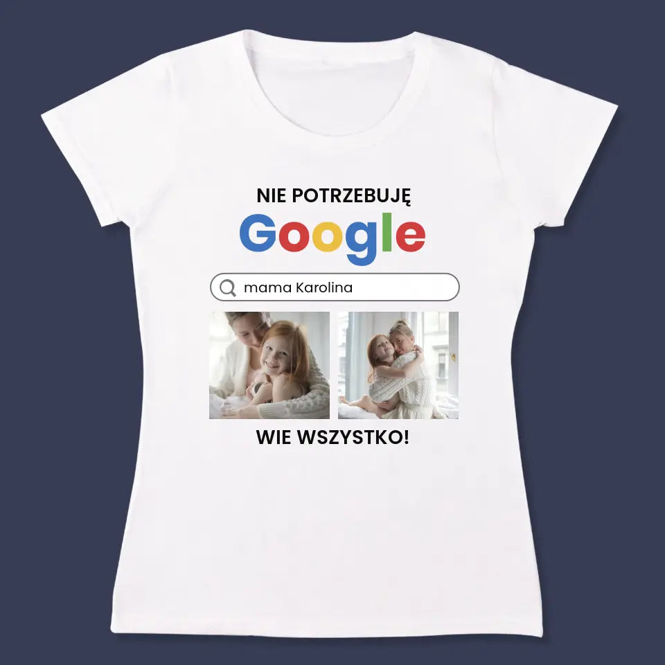 Fotokolaż: Nie Potrzebuję Google - Personalizowana Koszulka Damska