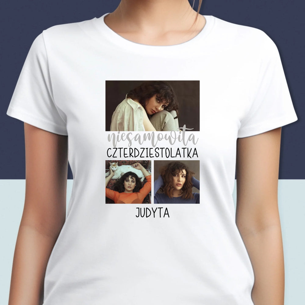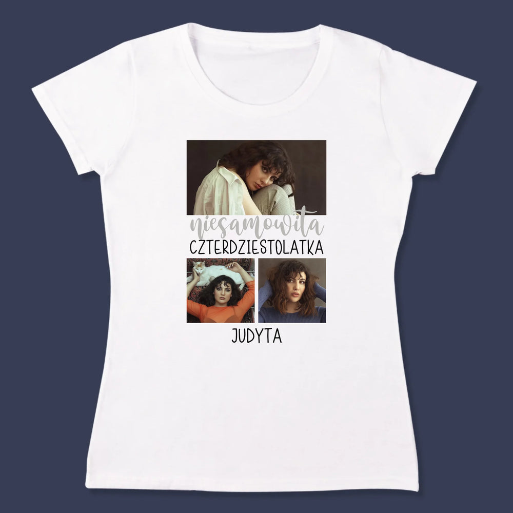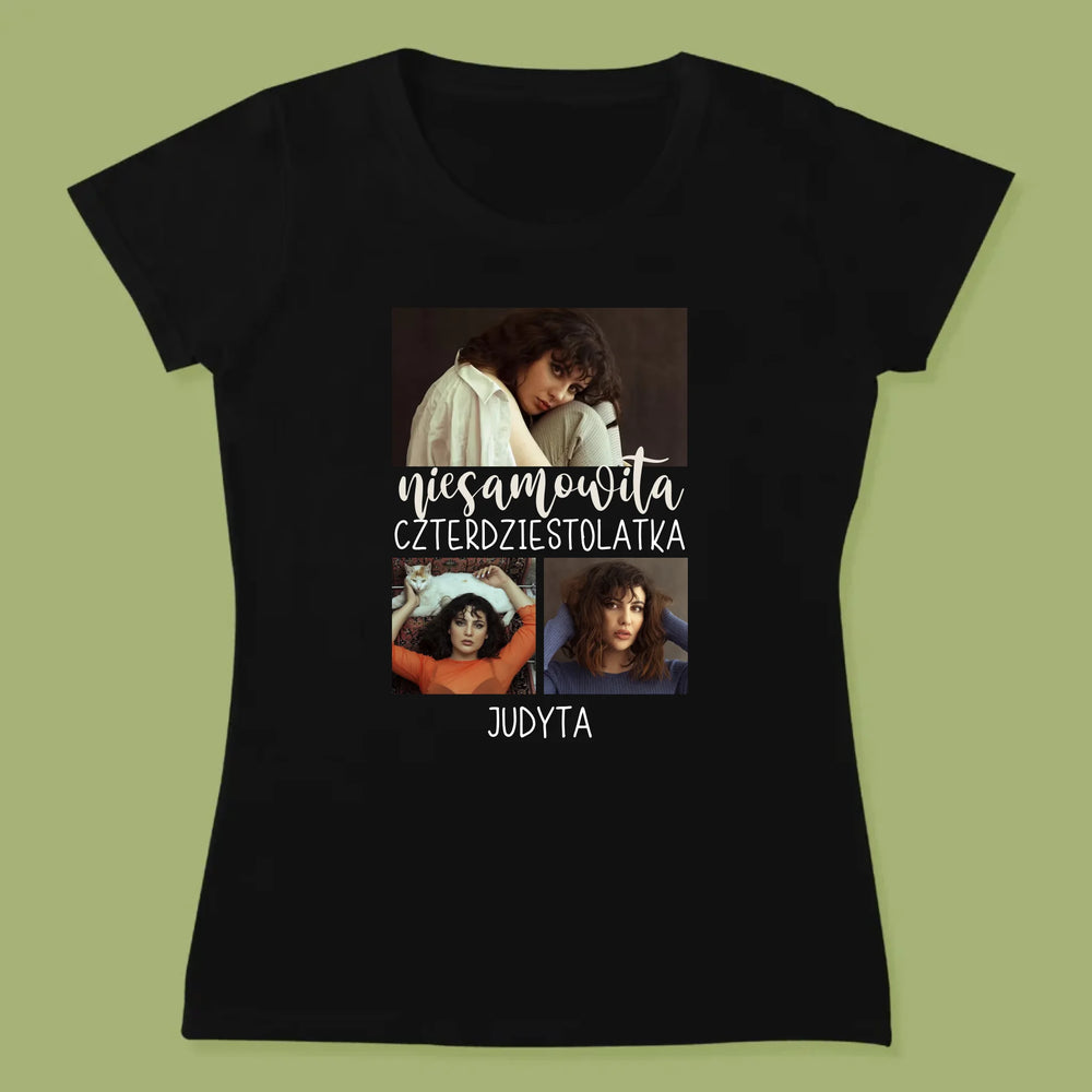 Fotokolaż: Niesamowita Czterdziestolatka - Personalizowana Koszulka Damska