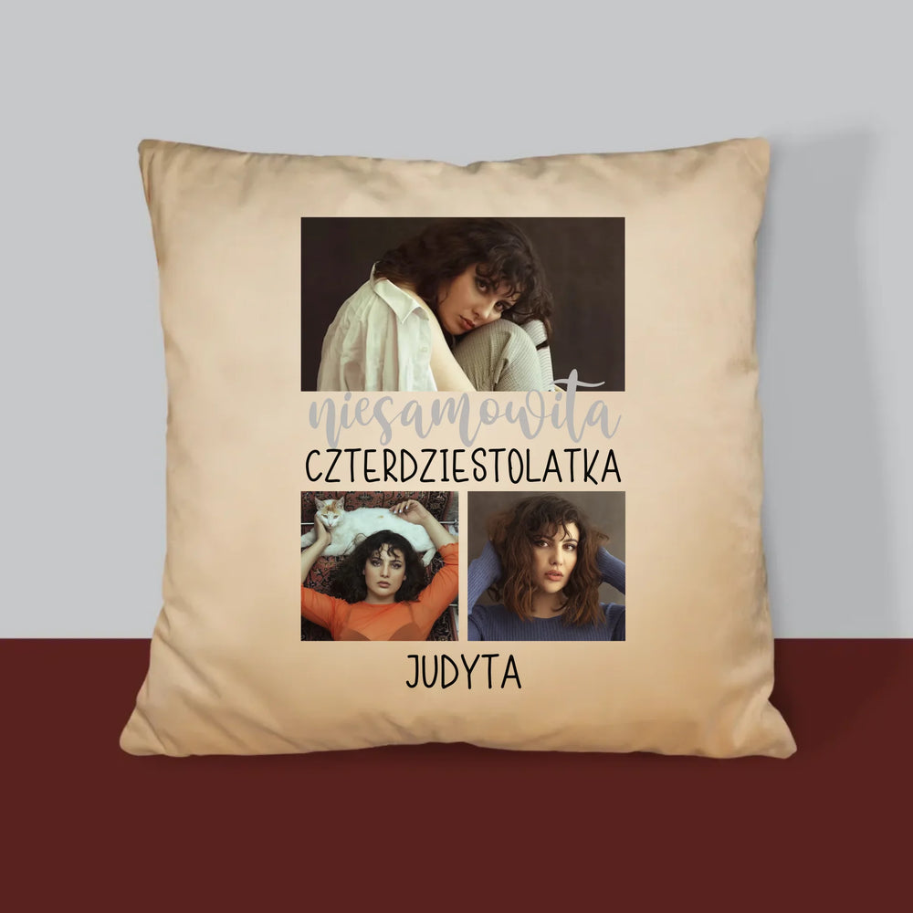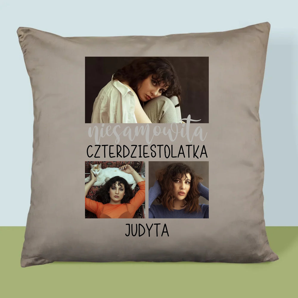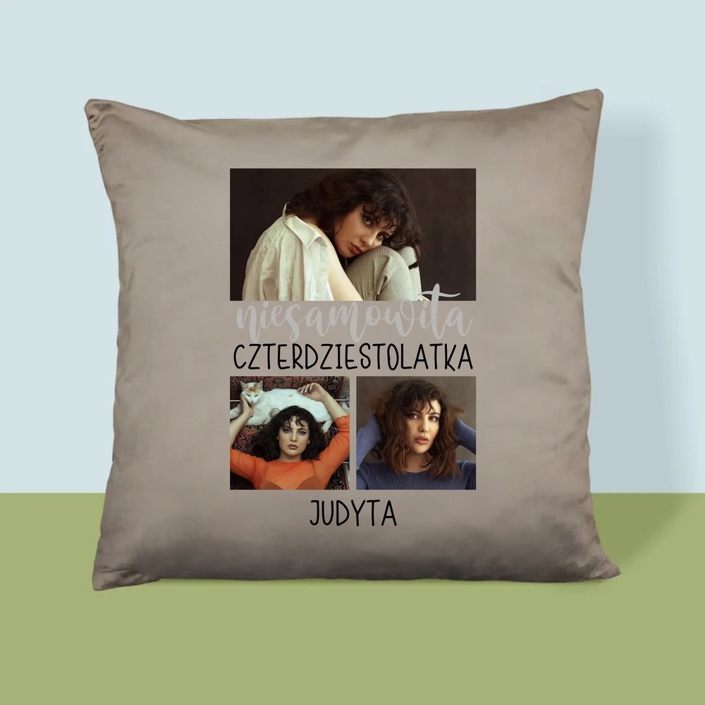 Fotokolaż: Niesamowita Czterdziestolatka - Poduszka z Nadrukiem
