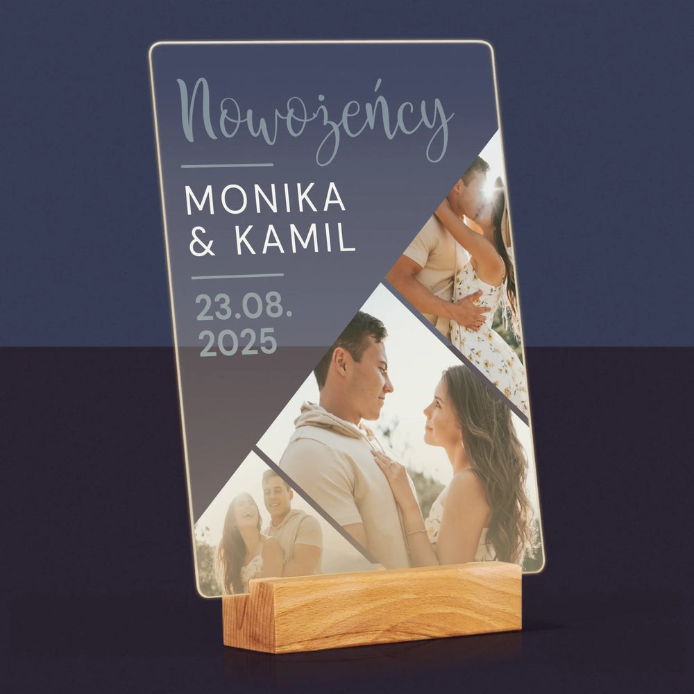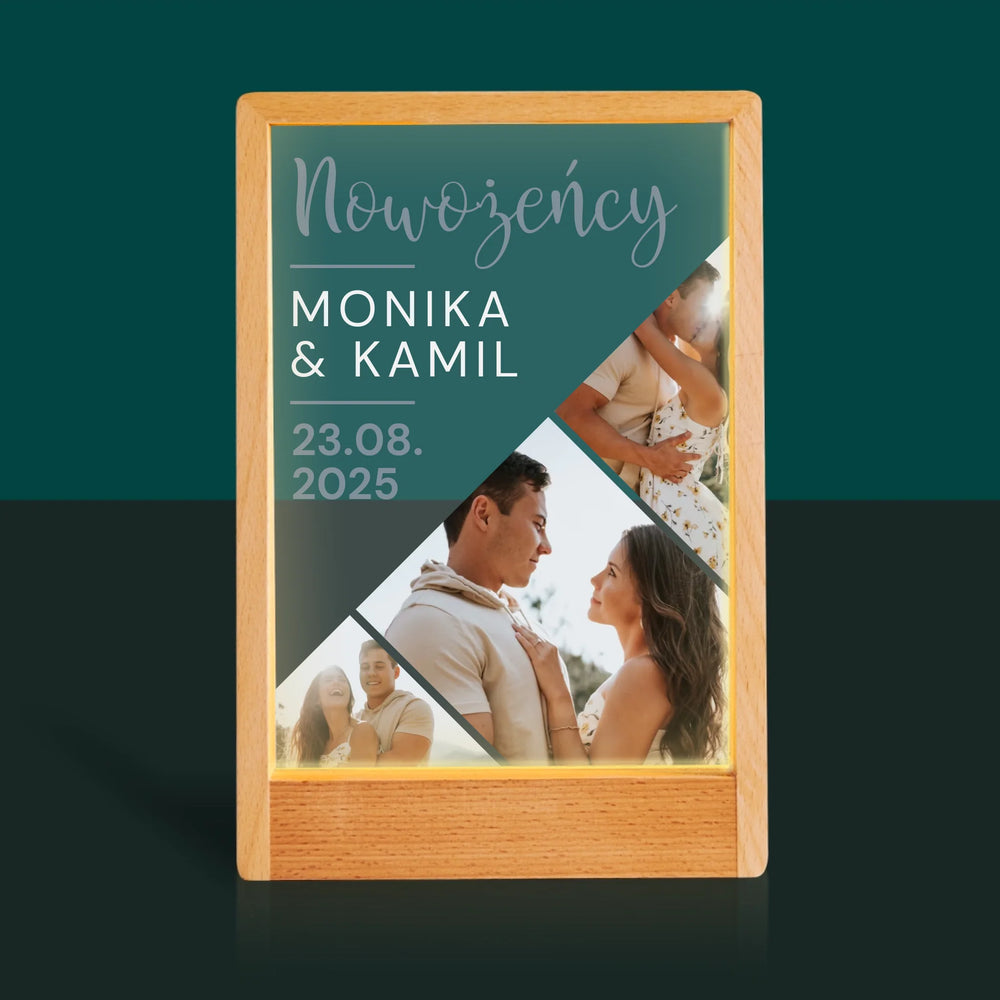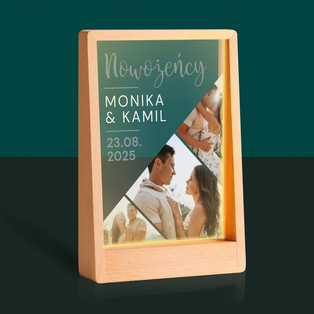 Fotokolaż: Nowożeńcy - Wydruk na szkle akrylowym w ramce LED