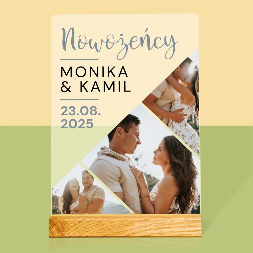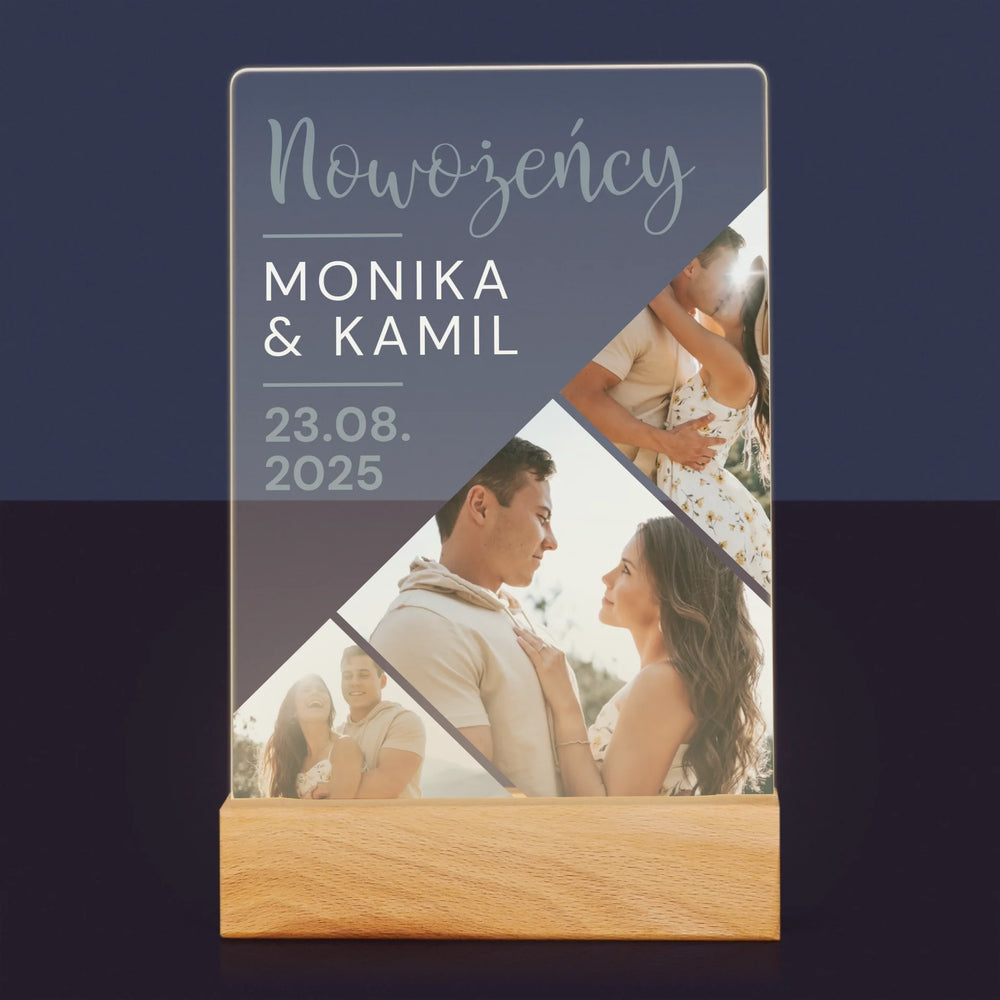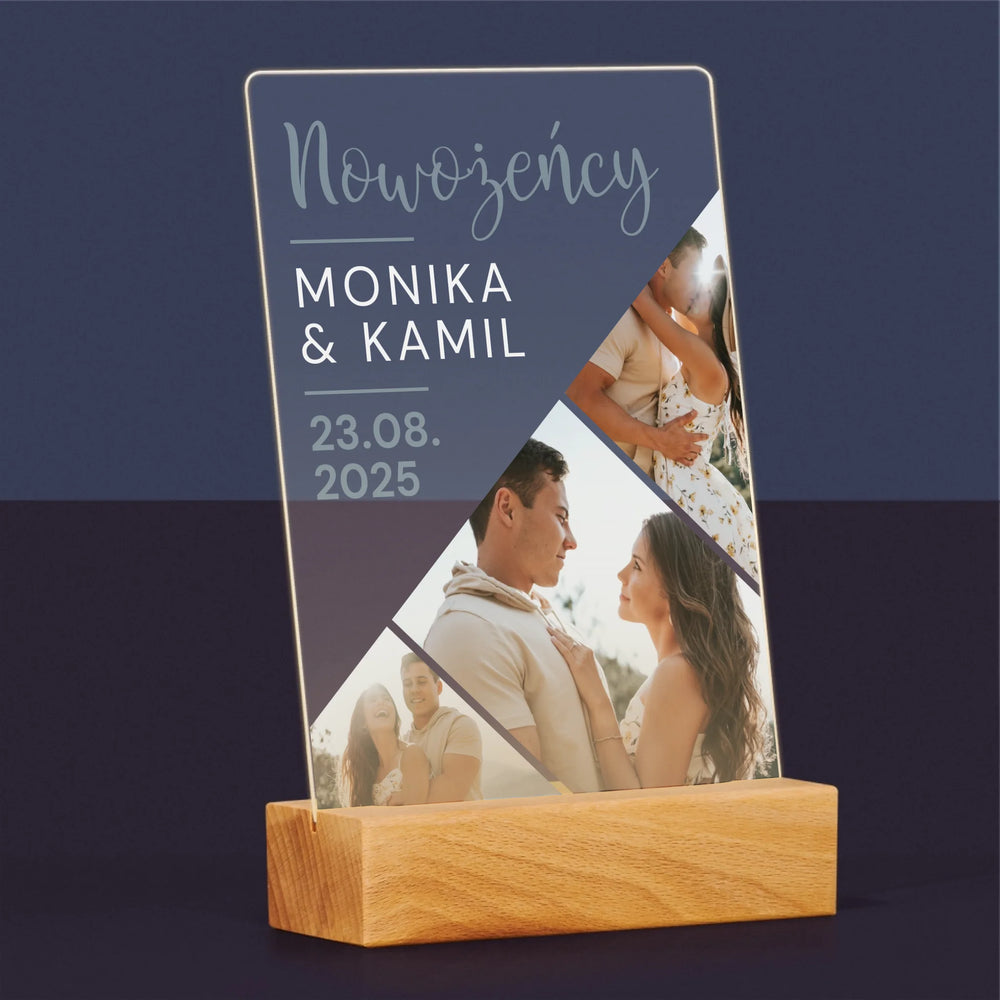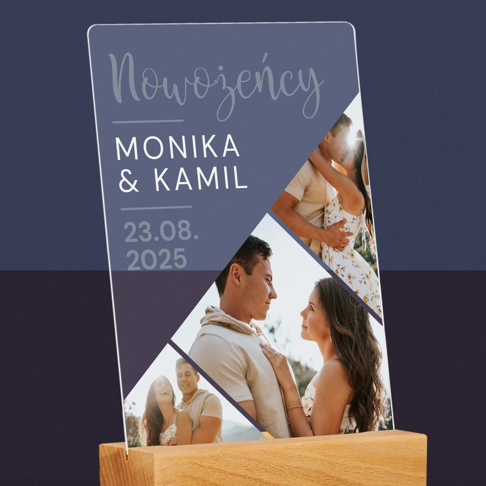 Fotokolaż: Nowożeńcy - Wydruk na szkle akrylowym w ramce LED
