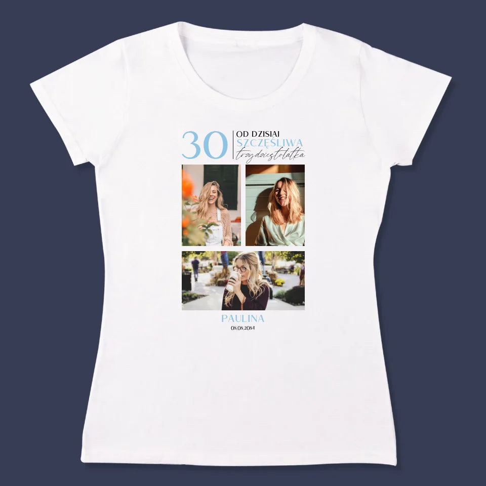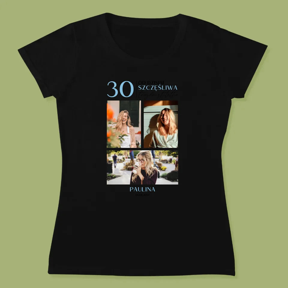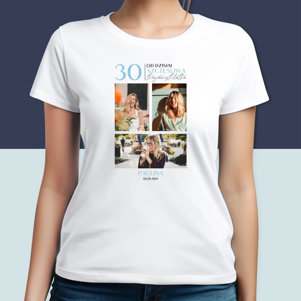Fotokolaż: Od Dzisiaj Szczęśliwa 30 - Personalizowana Koszulka Damska