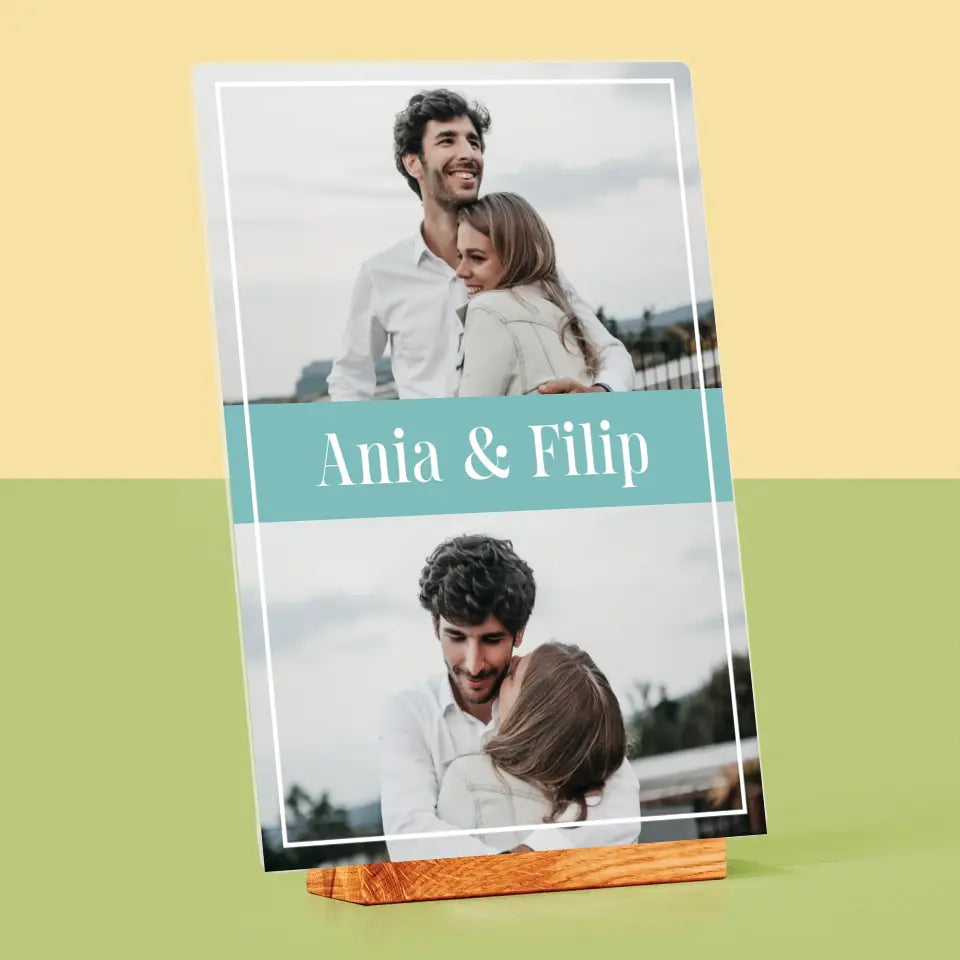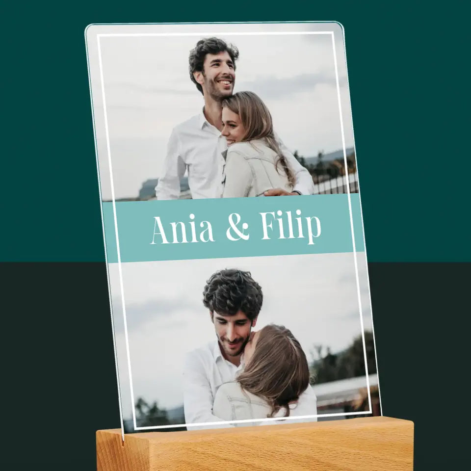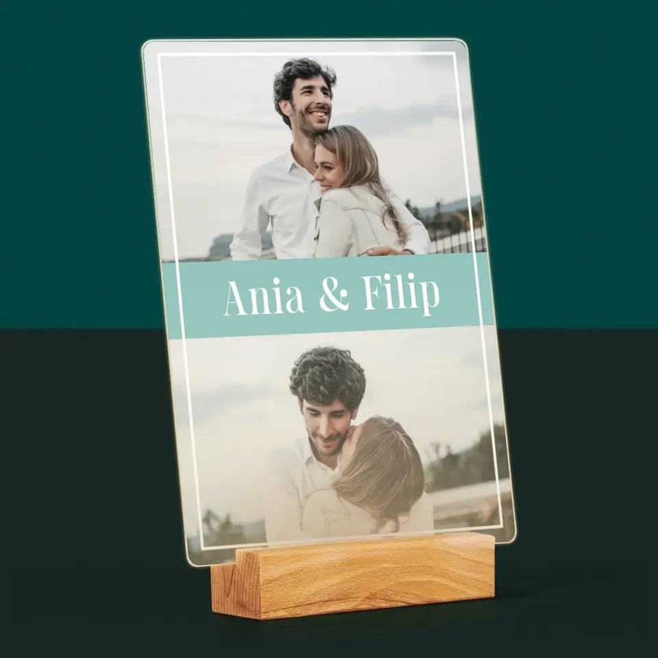 Fotokolaż: Para Imiona - Wydruk na szkle akrylowym LED