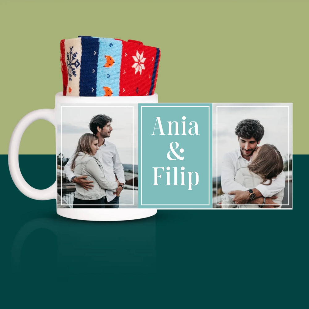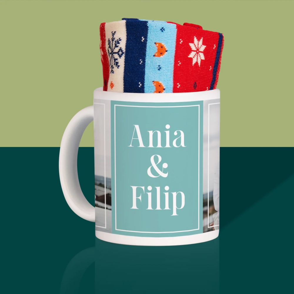 Fotokolaż: Para Imiona - Zimowe skarpetki w kubku