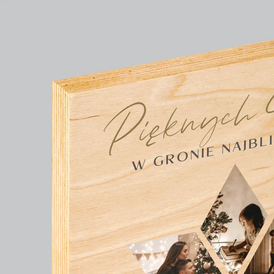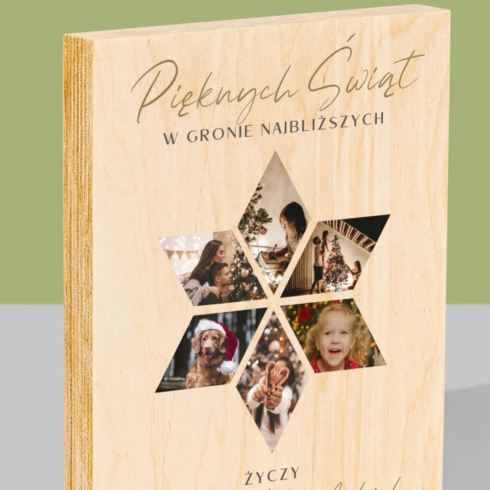Fotokolaż: Pięknych Świąt Gwiazdka - Wydruk Na Drewnie