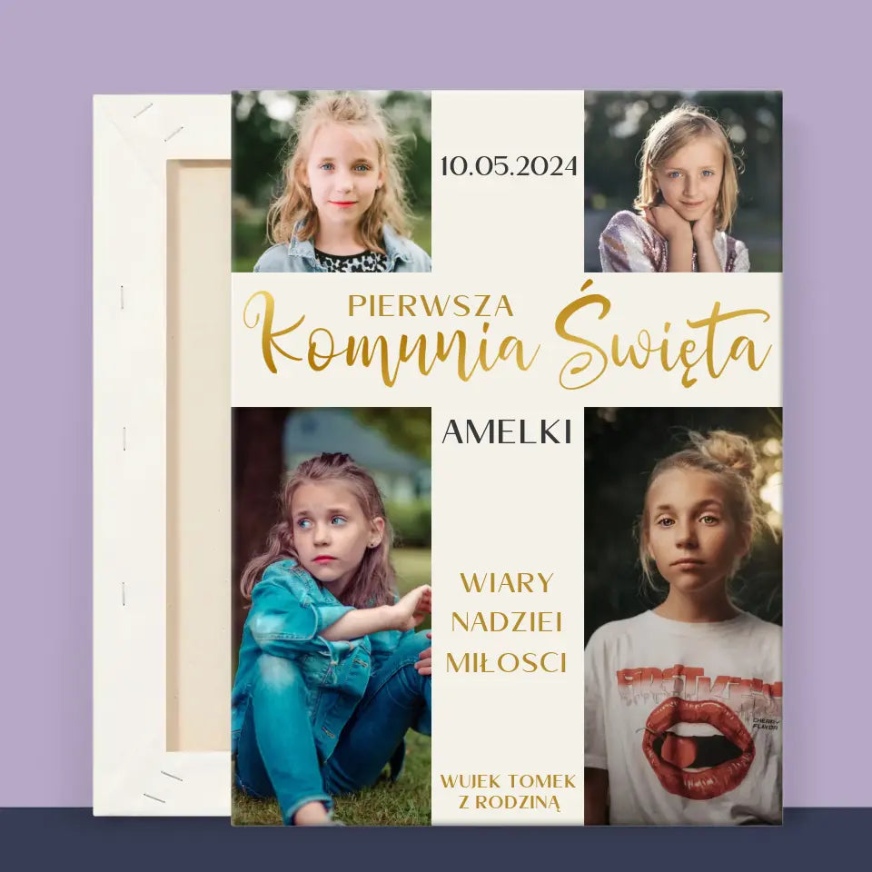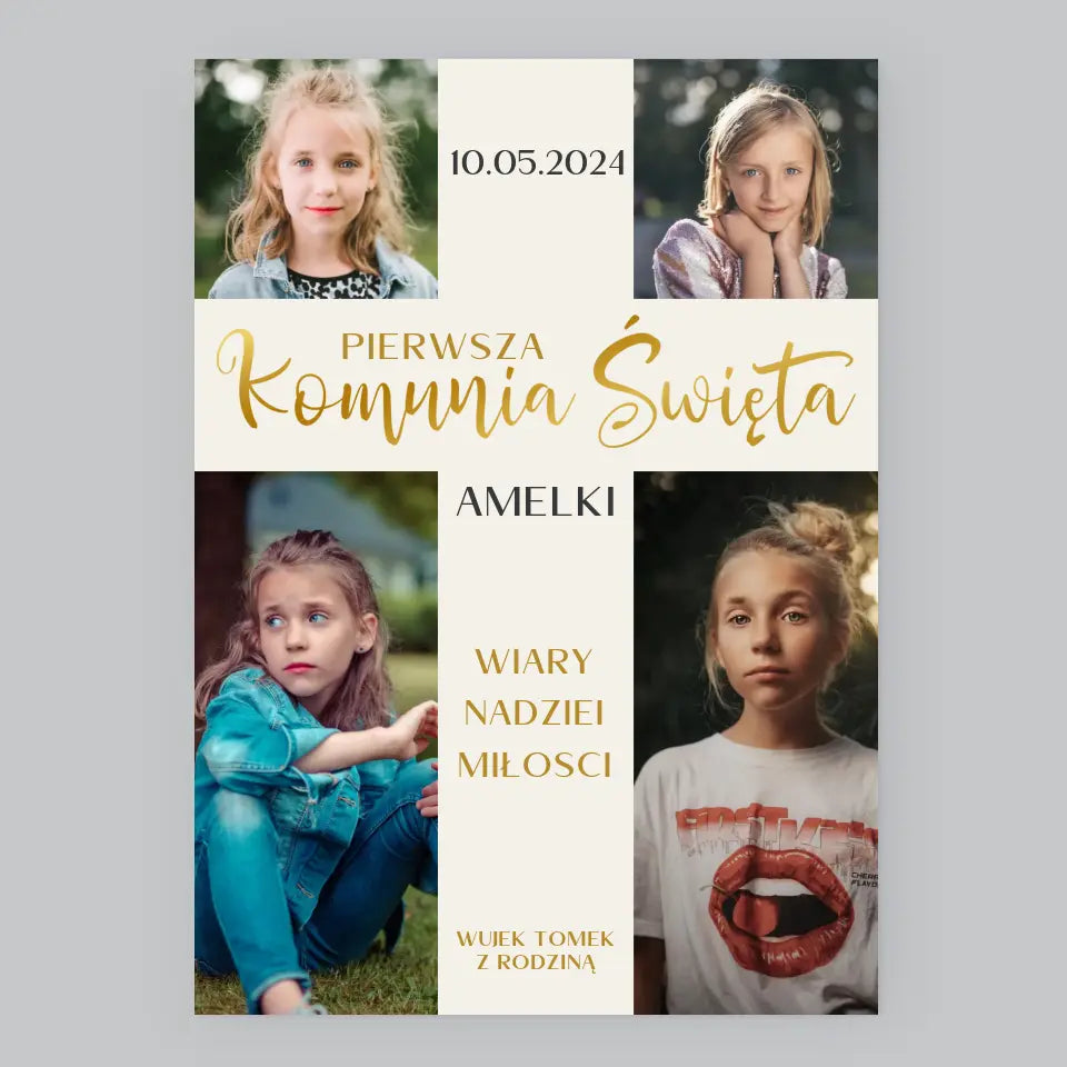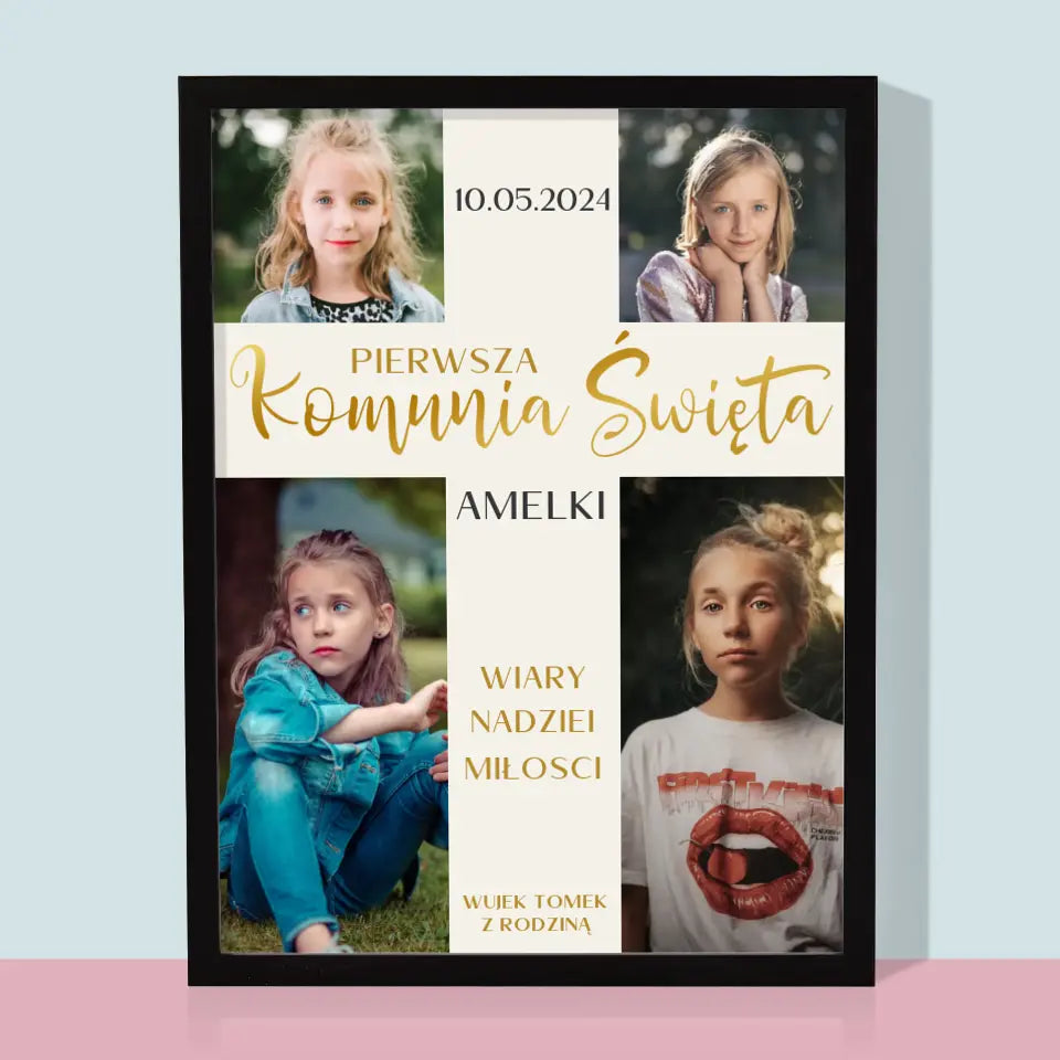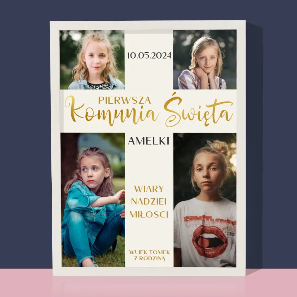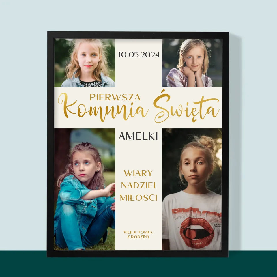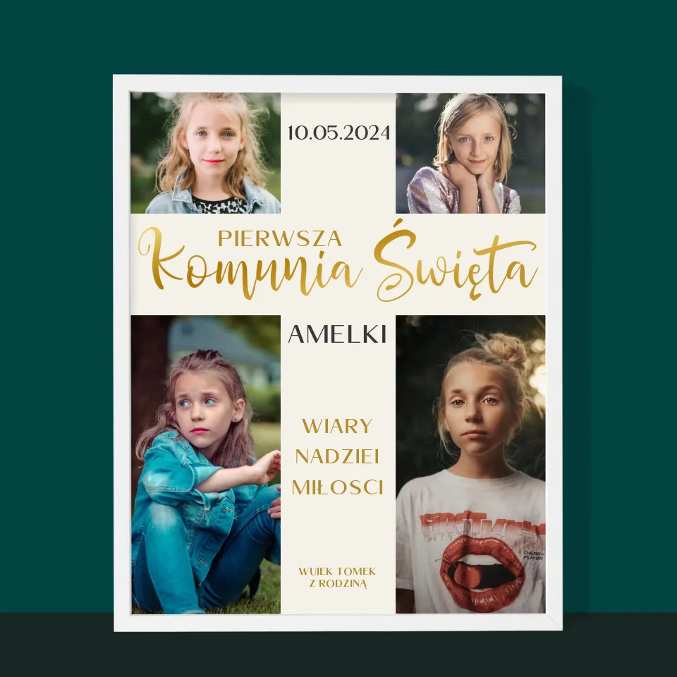 Fotokolaż: Pierwsza Komunia Krzyż - Wydruk Obramowany