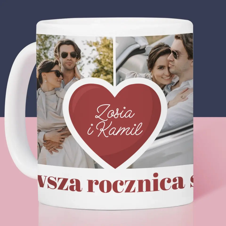 Fotokolaż: Pierwsza Rocznica Serce - Kubek z nadrukiem