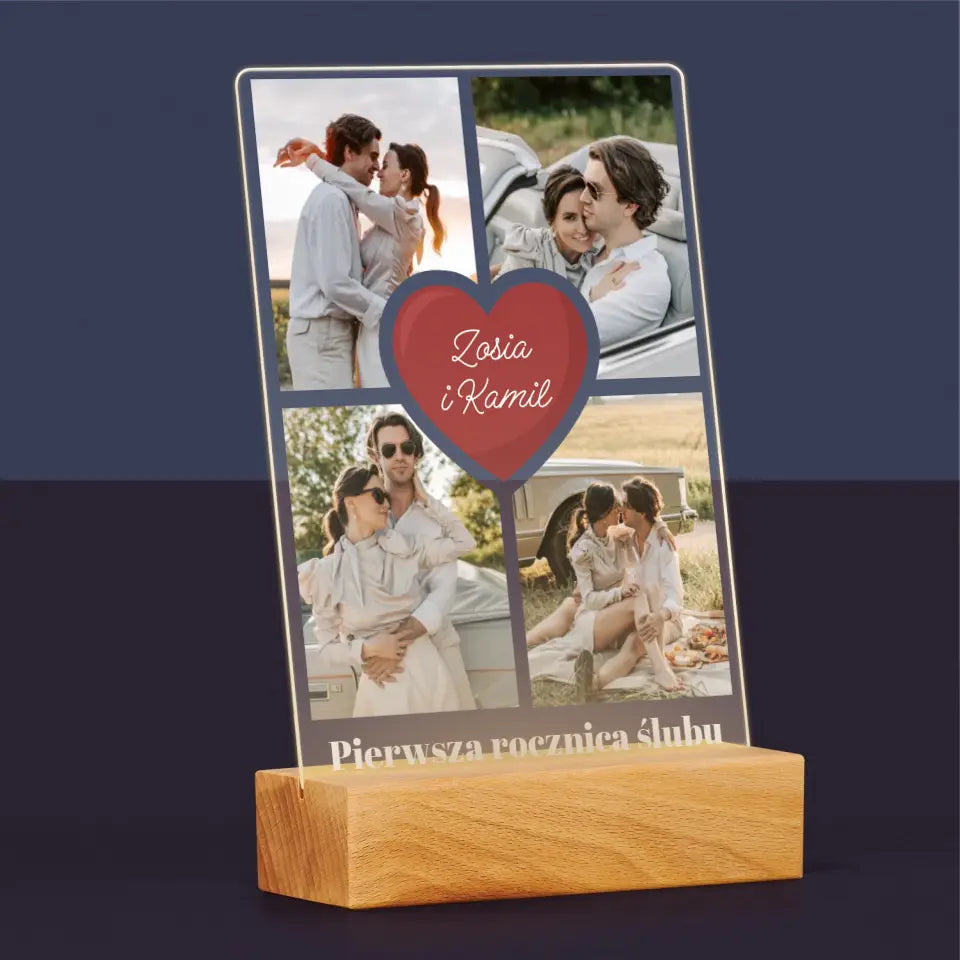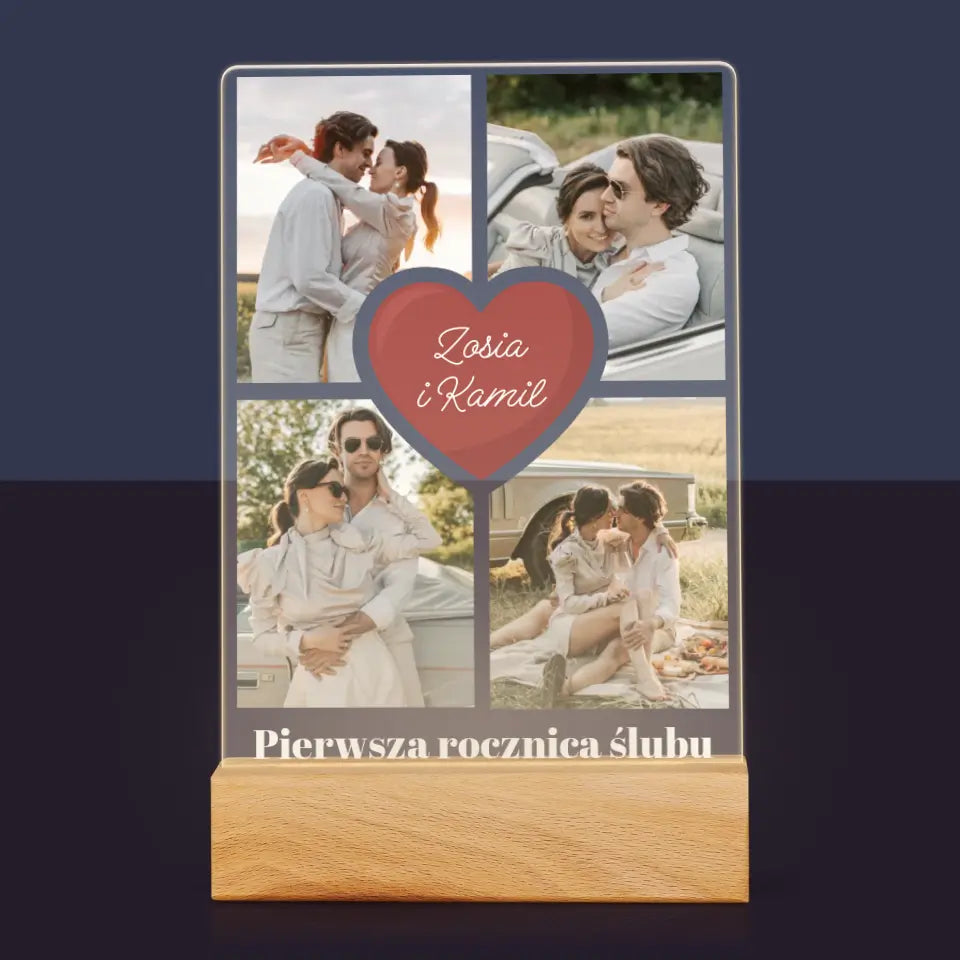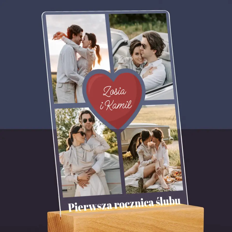 Fotokolaż: Pierwsza Rocznica Serce - Wydruk na szkle akrylowym