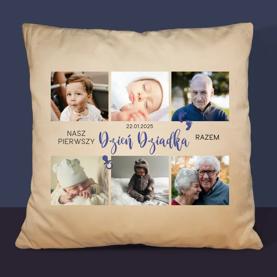 Fotokolaż: Pierwszy Dzień Dziadka - Poduszka z Nadrukiem