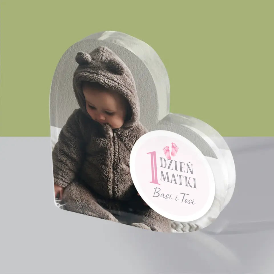 Fotokolaż: Pierwszy Dzień Matki - Blok akrylowy serce