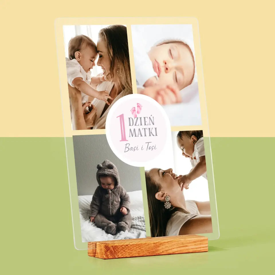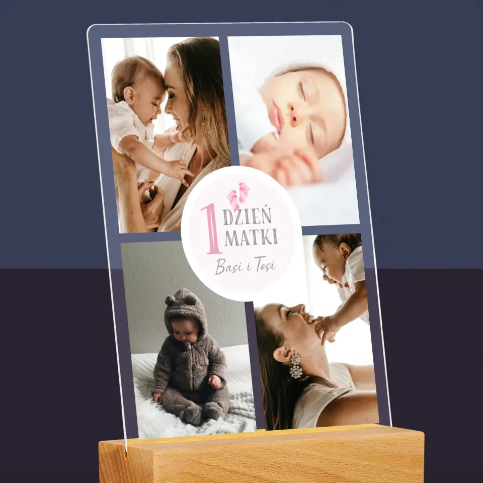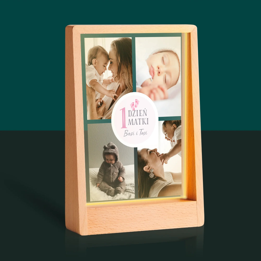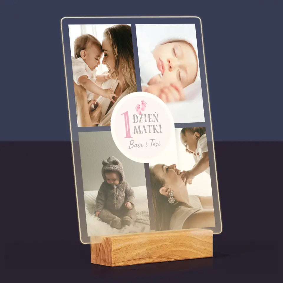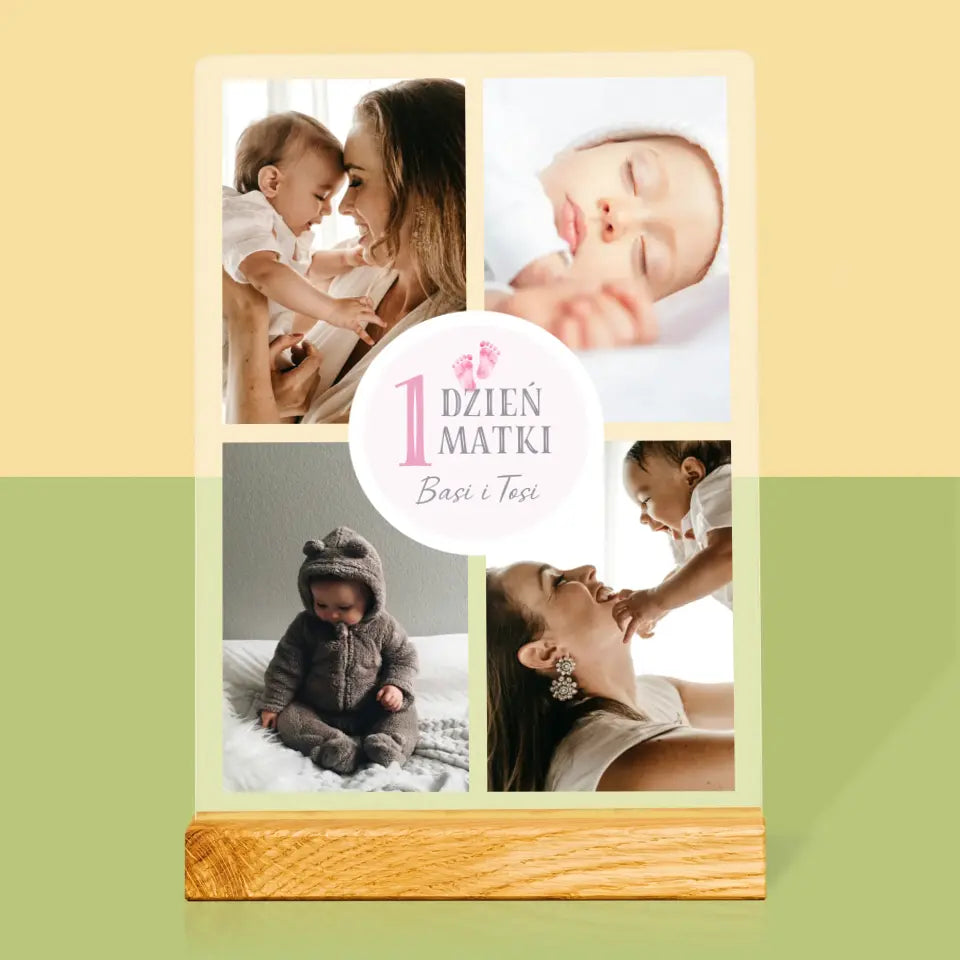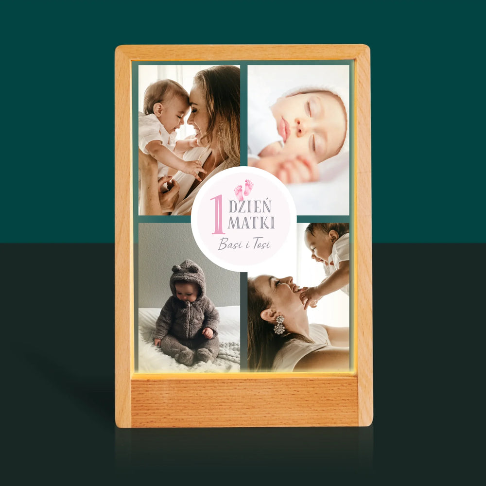 Fotokolaż: Pierwszy Dzień Matki - Wydruk na szkle akrylowym w ramce LED