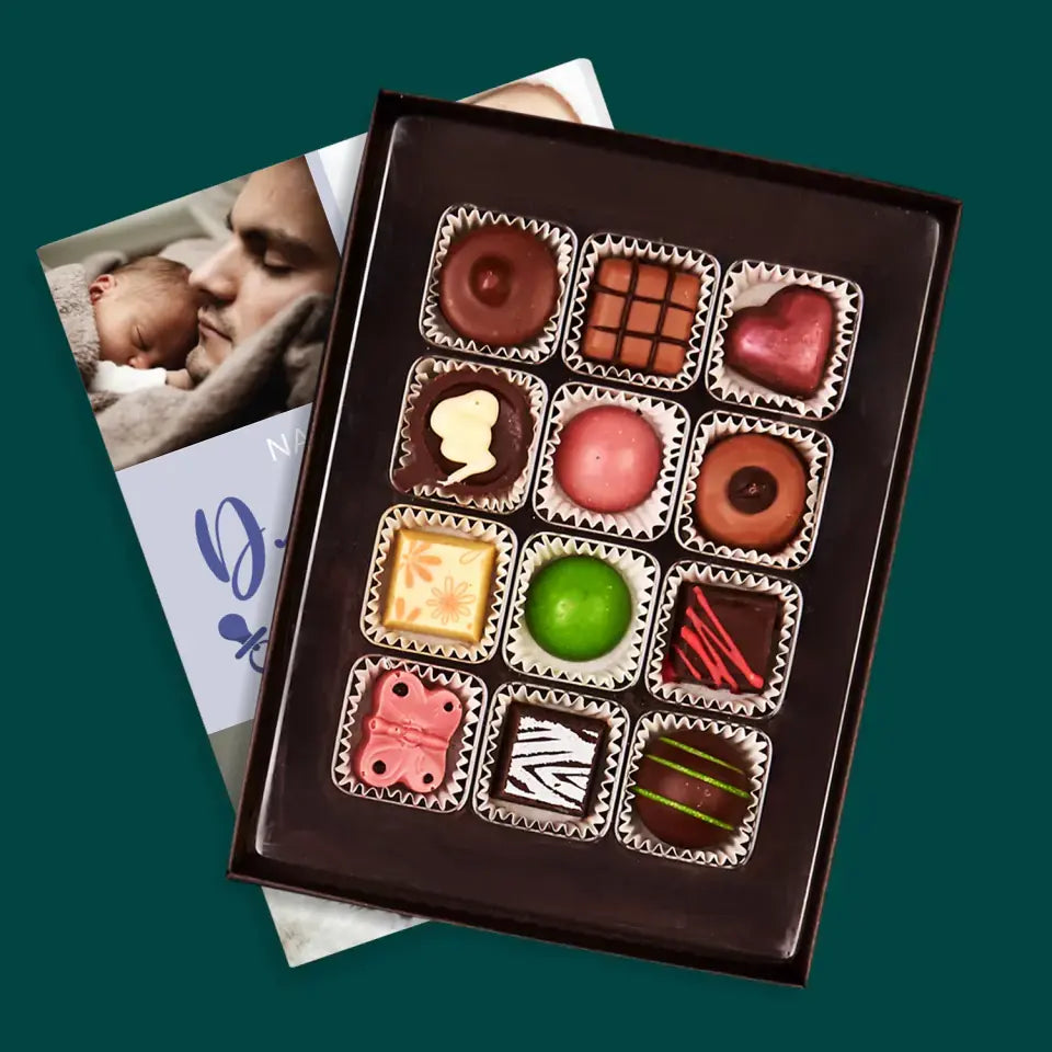 Pyszne praliny z belgijskiej czekolady w eleganckim pudełku z wybraną przez Ciebie personalizacją.
