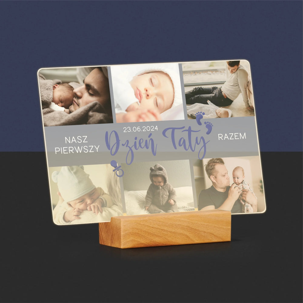 Fotokolaż: Pierwszy Dzień Taty - Wydruk na szkle akrylowym - poziom