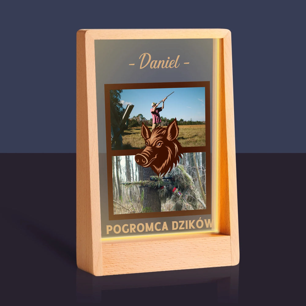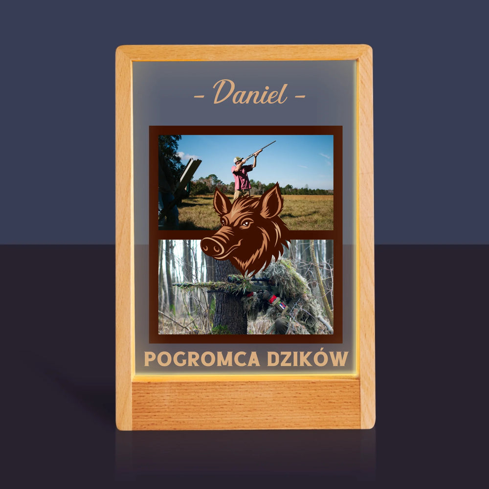 Fotokolaż: Pogromca Dzików - Wydruk na szkle akrylowym w ramce LED