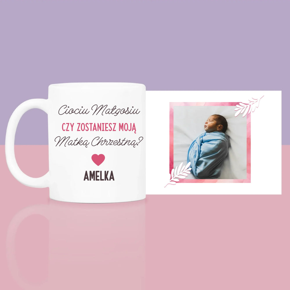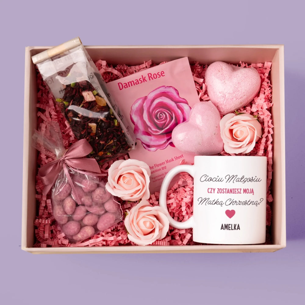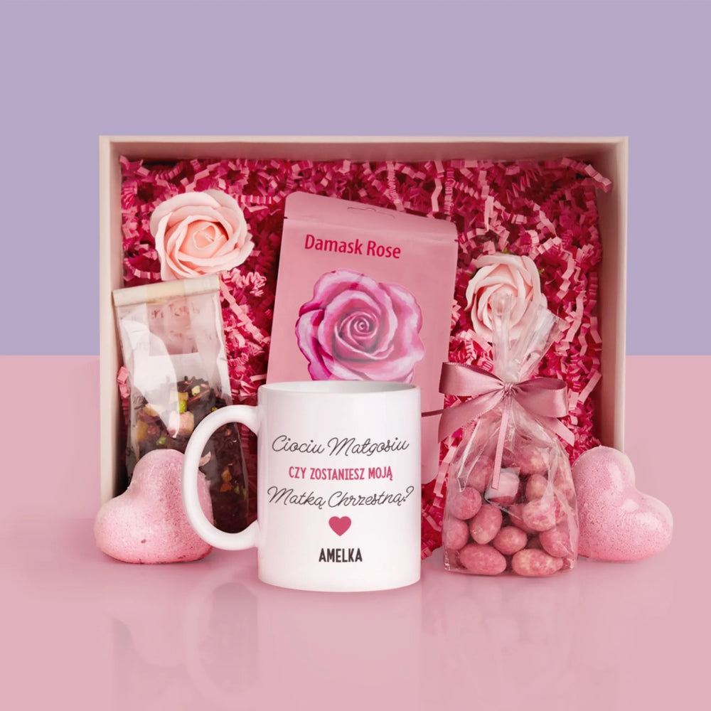 Fotokolaż: Prośba O Zostanie Chrzestną - Zestaw prezentowy z kubkiem i różanym spa