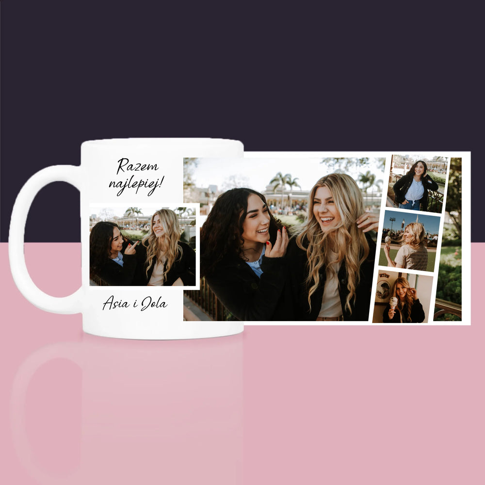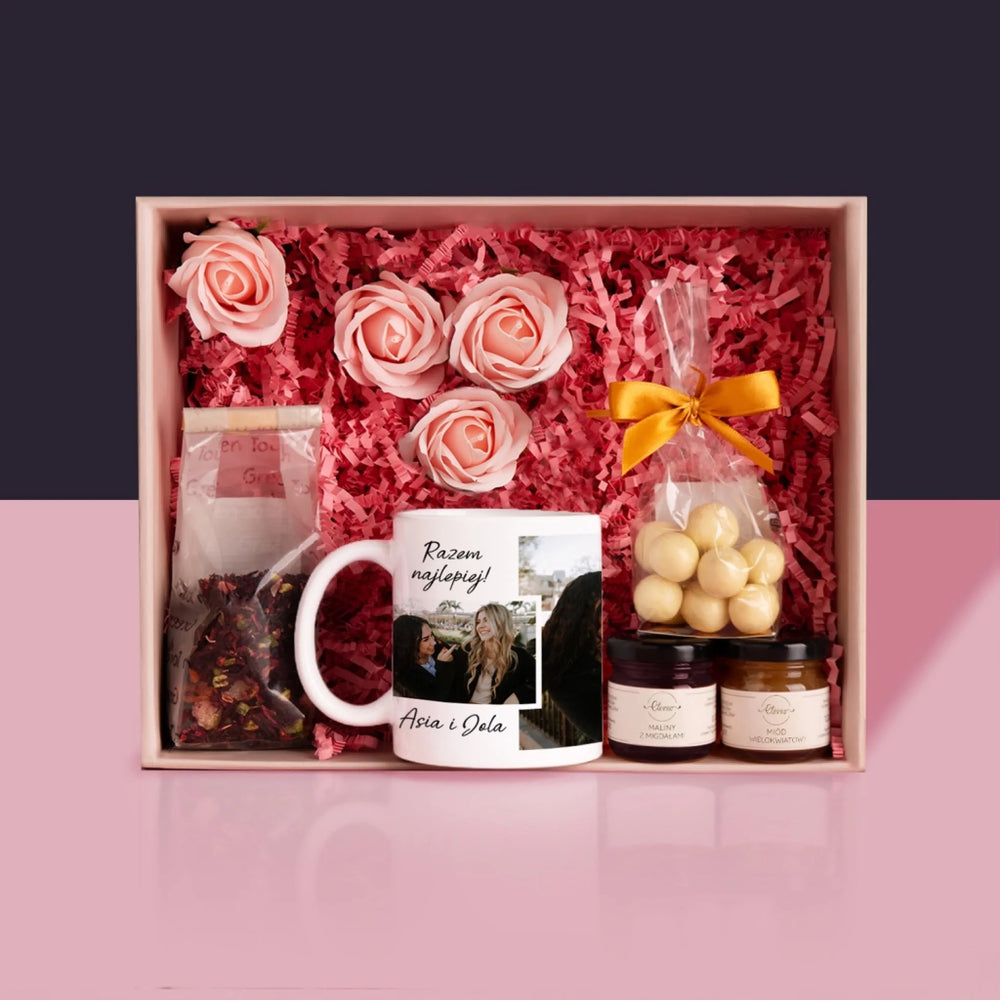 Fotokolaż: Przyjaciółki Razem Najlepiej - Zestaw prezentowy z kubkiem, herbatą i słodkościami