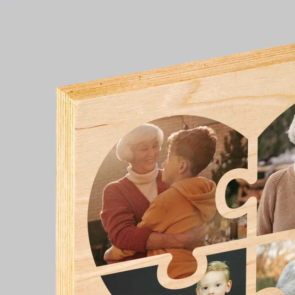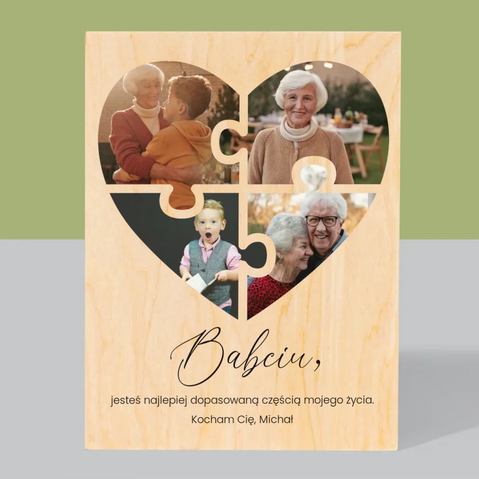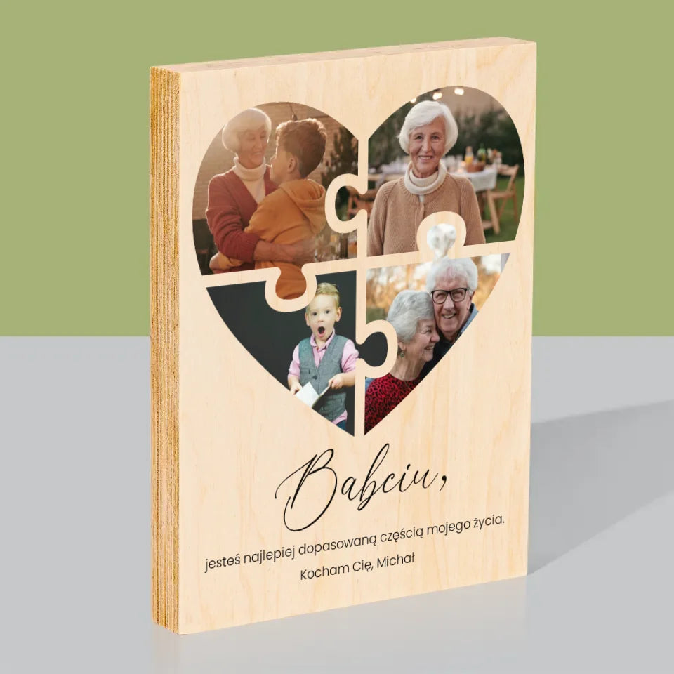 Fotokolaż: Puzzle Serce Dla Babci - Wydruk na drewnie - Pion