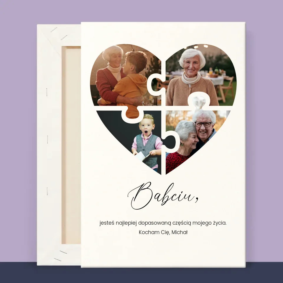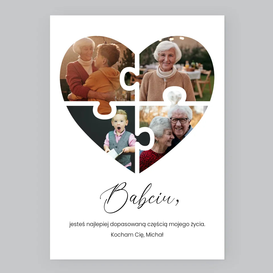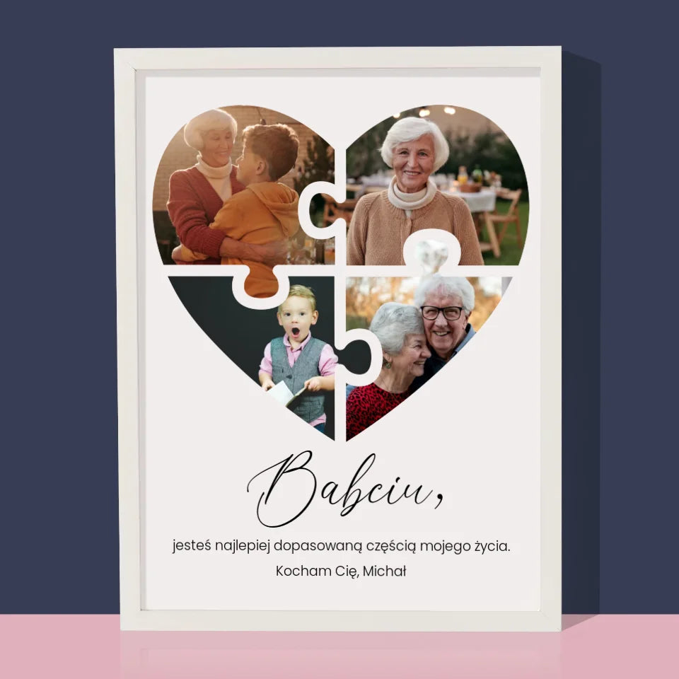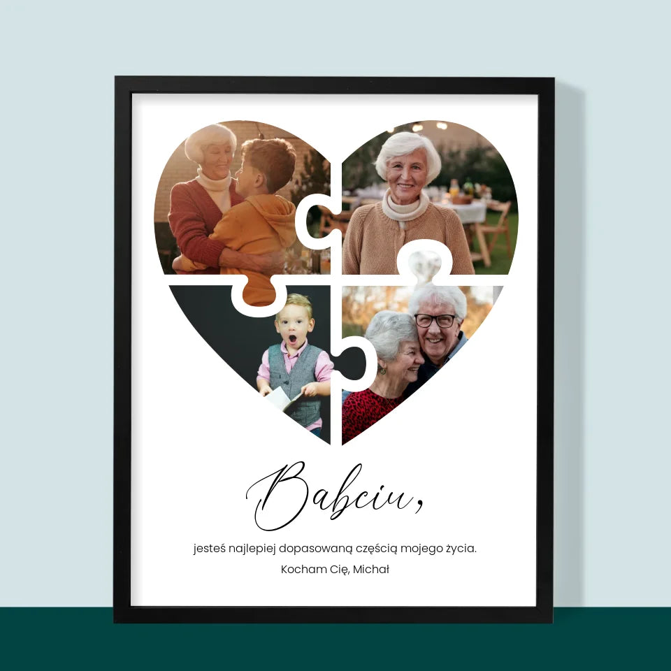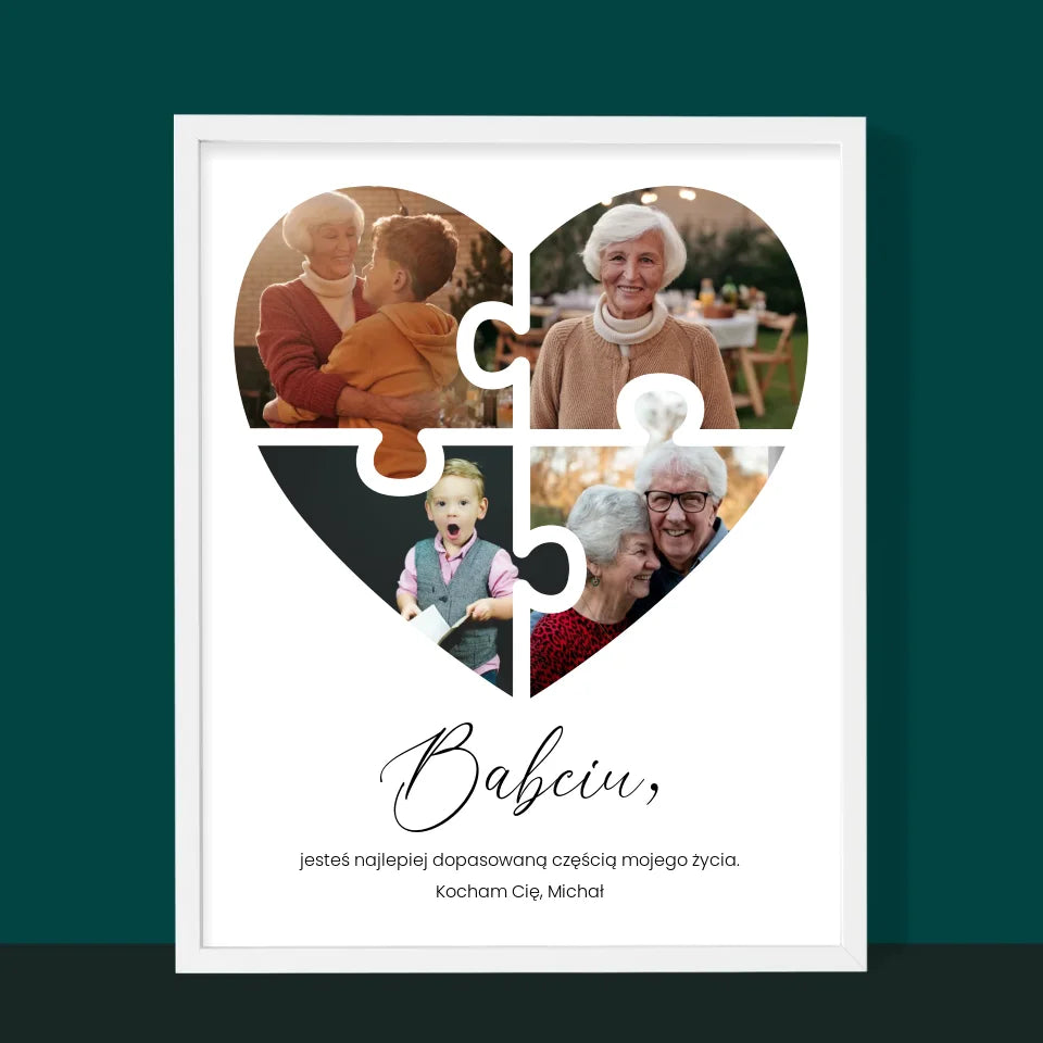Fotokolaż: Puzzle Serce Dla Babci - Wydruk obramowany - Pion
