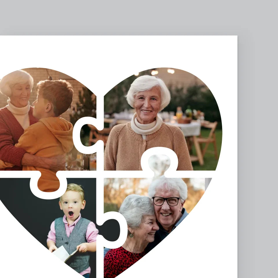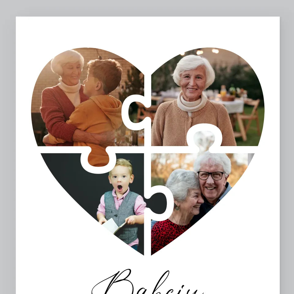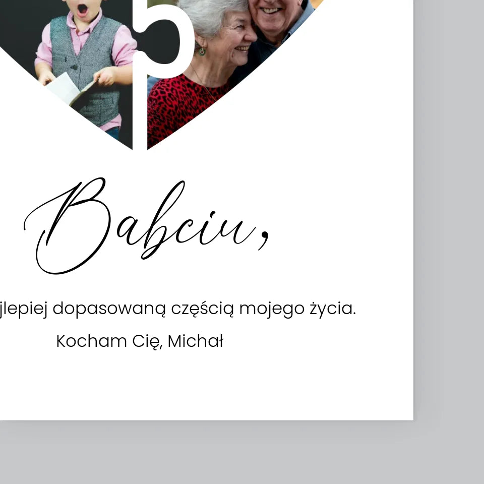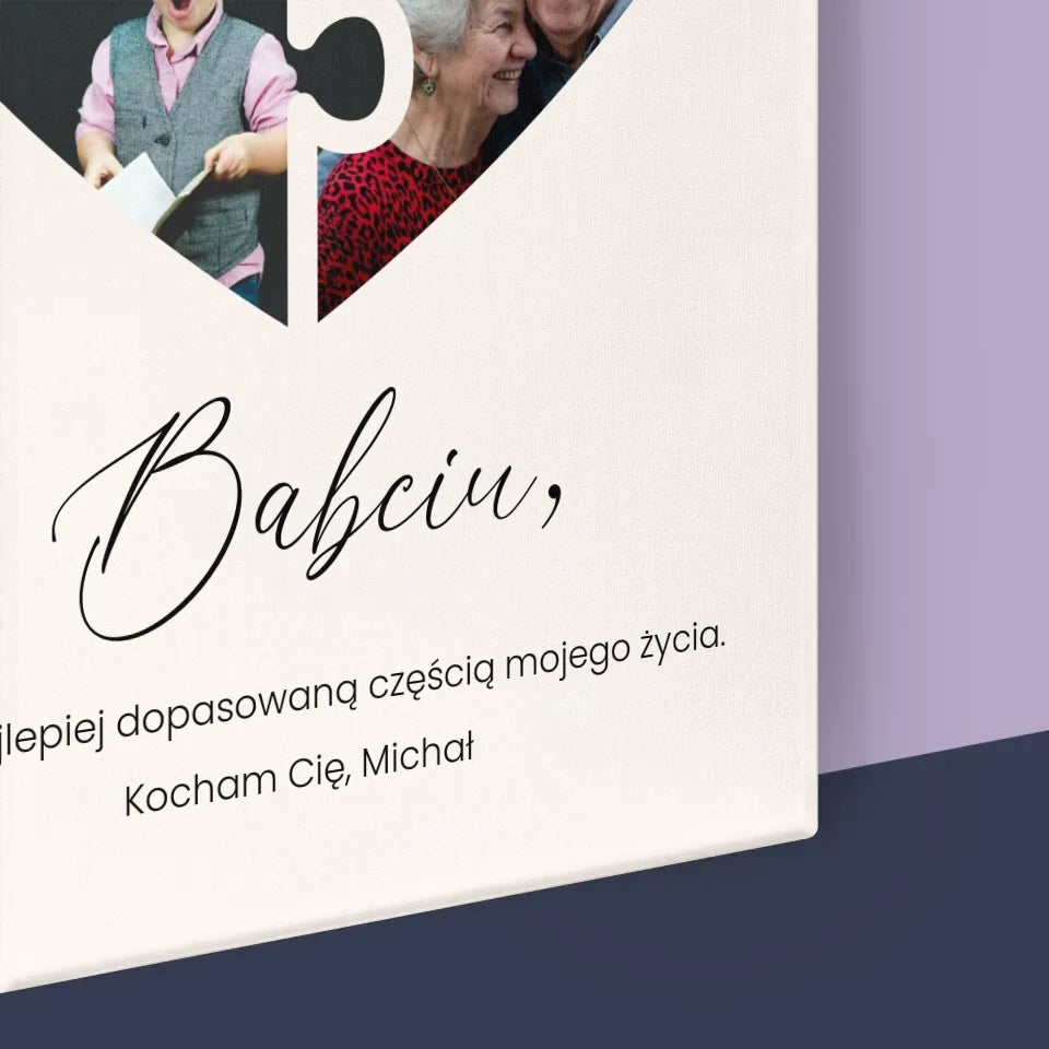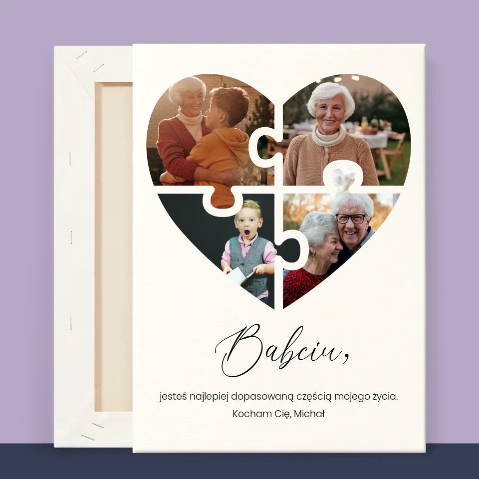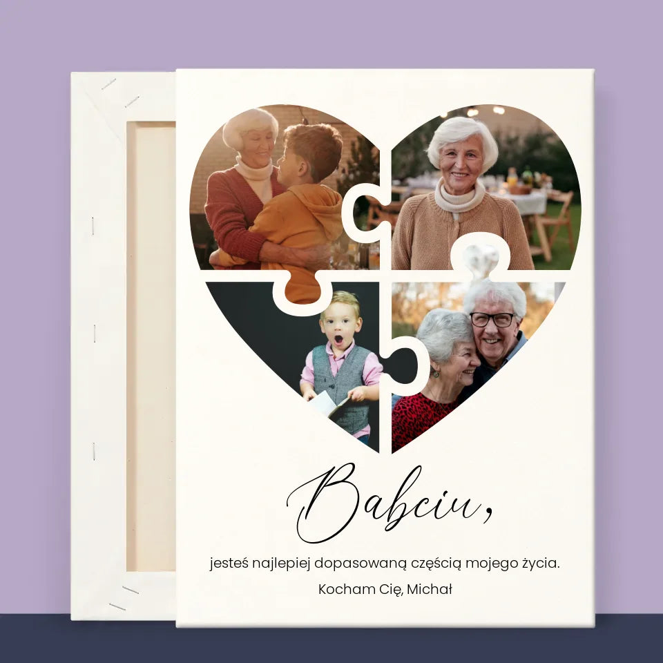 Fotokolaż: Puzzle Serce Dla Babci - Wydruk obramowany - Pion