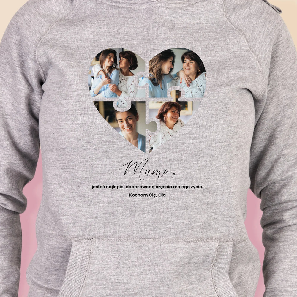 Fotokolaż: Puzzle Serce Dla Mamy - Bluza damska z kapturem