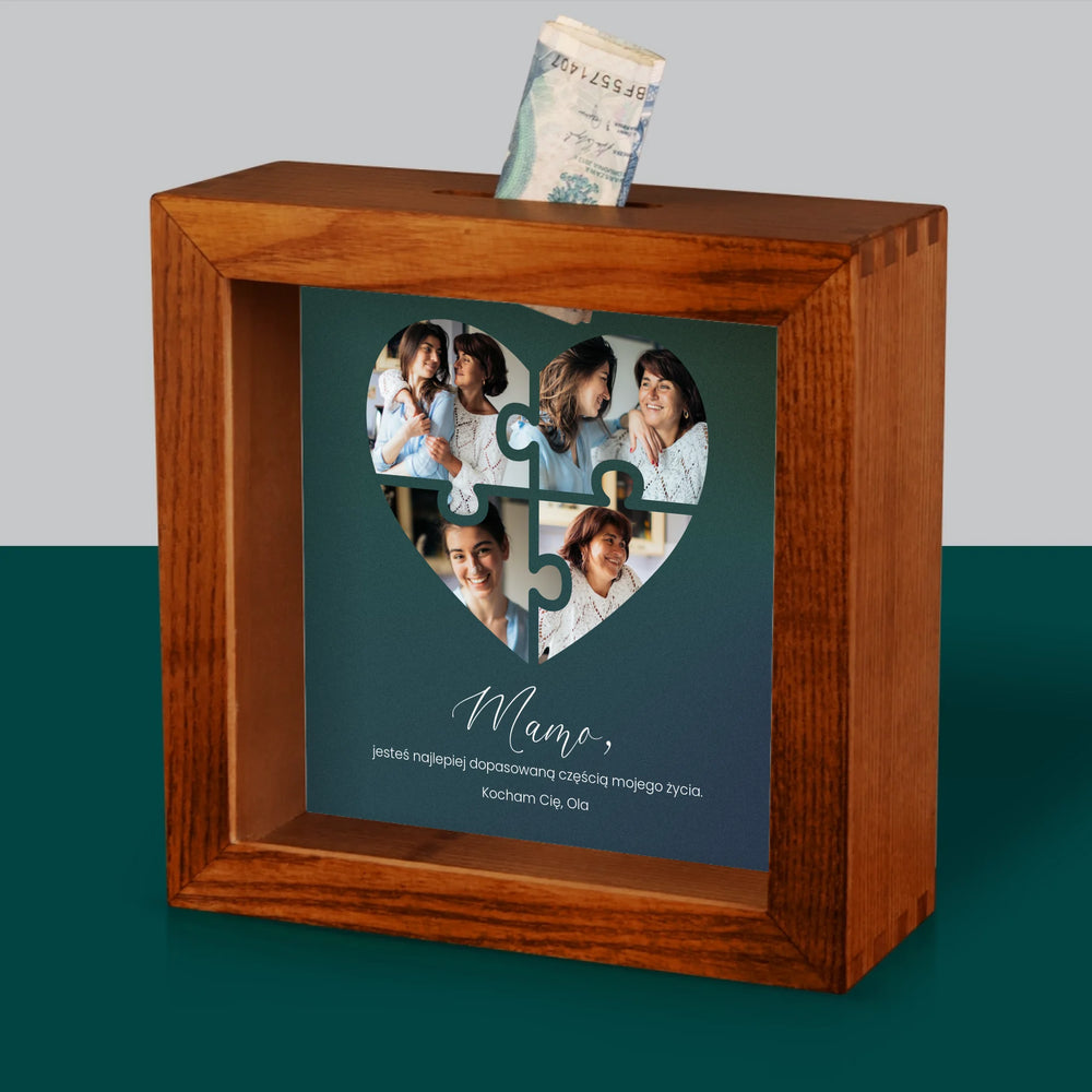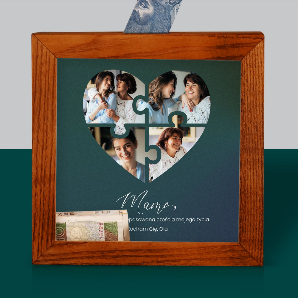 Fotokolaż: Puzzle Serce Dla Mamy - Drewniana skarbonka
