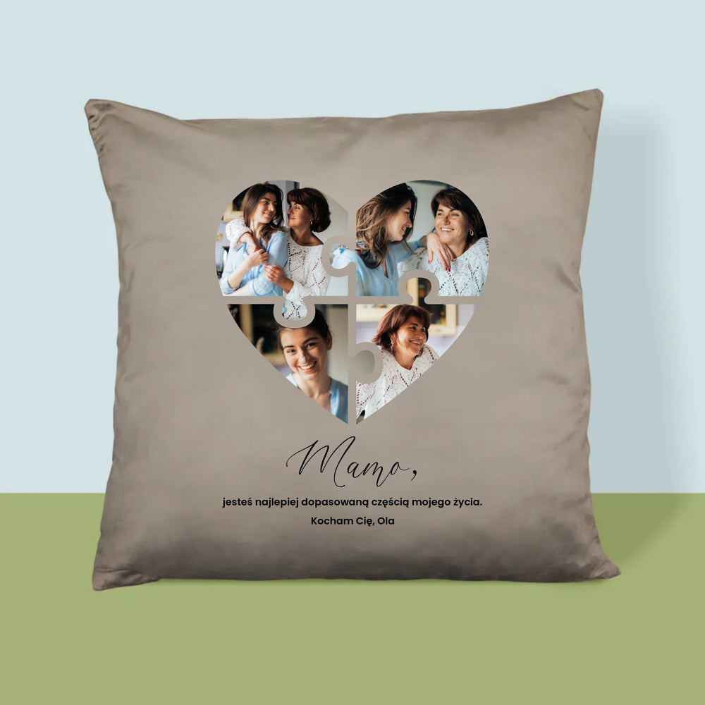 Fotokolaż: Puzzle Serce Dla Mamy - Poduszka z Nadrukiem