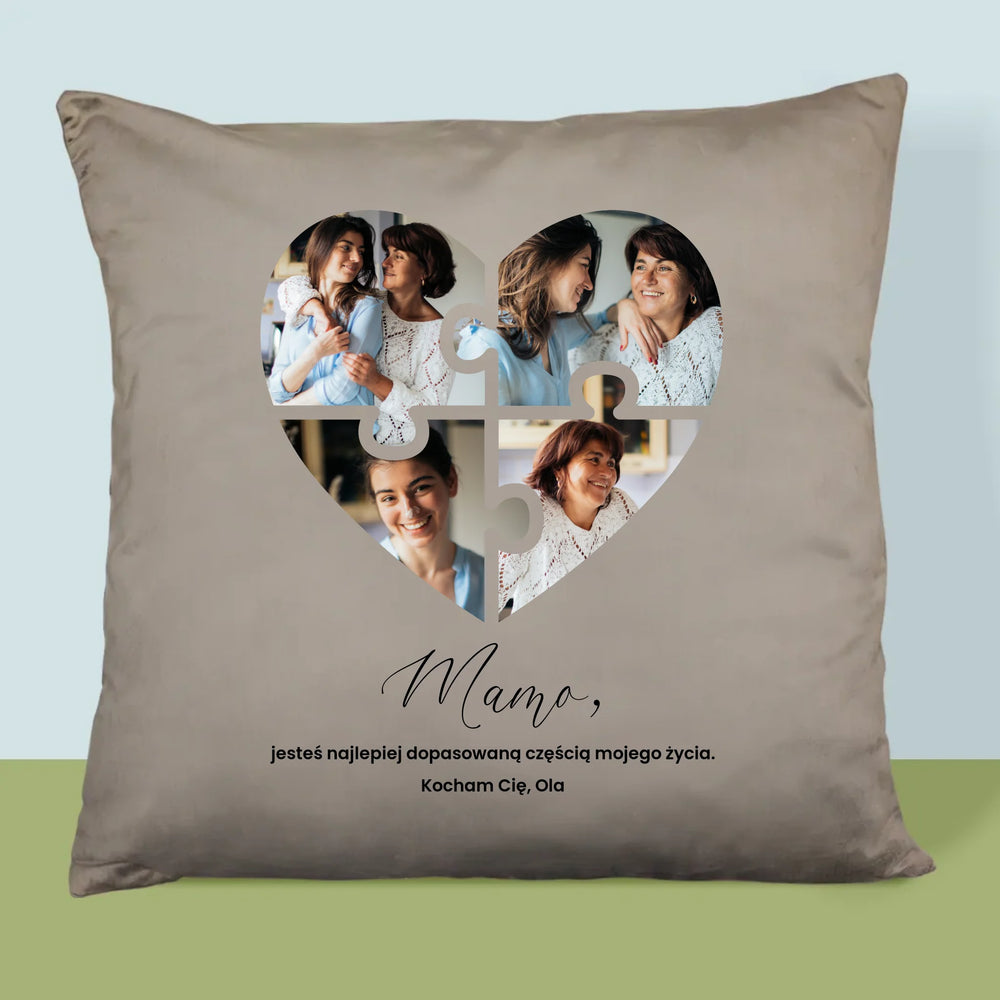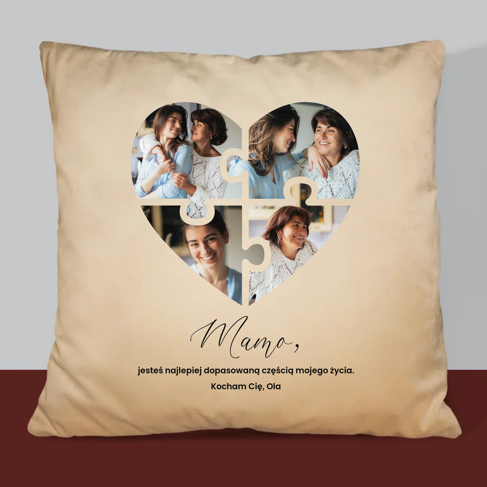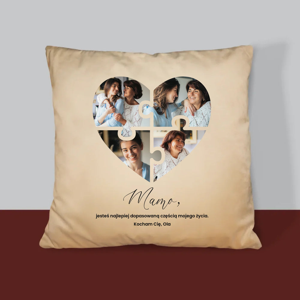 Fotokolaż: Puzzle Serce Dla Mamy - Poduszka z Nadrukiem