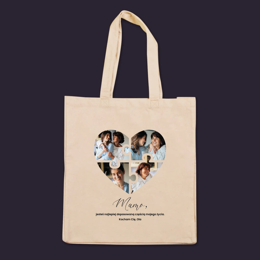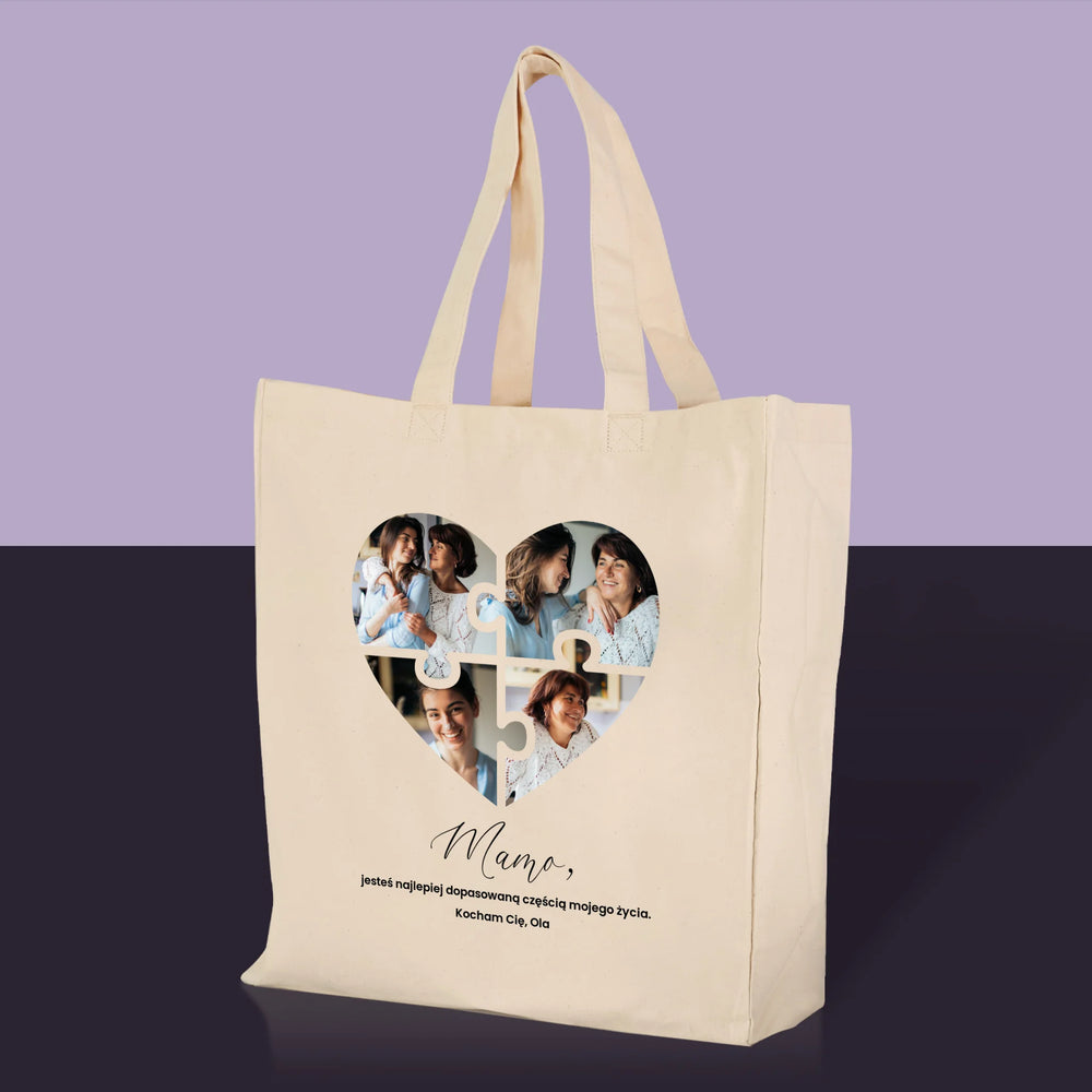 Fotokolaż: Puzzle Serce Dla Mamy - Torba płócienna